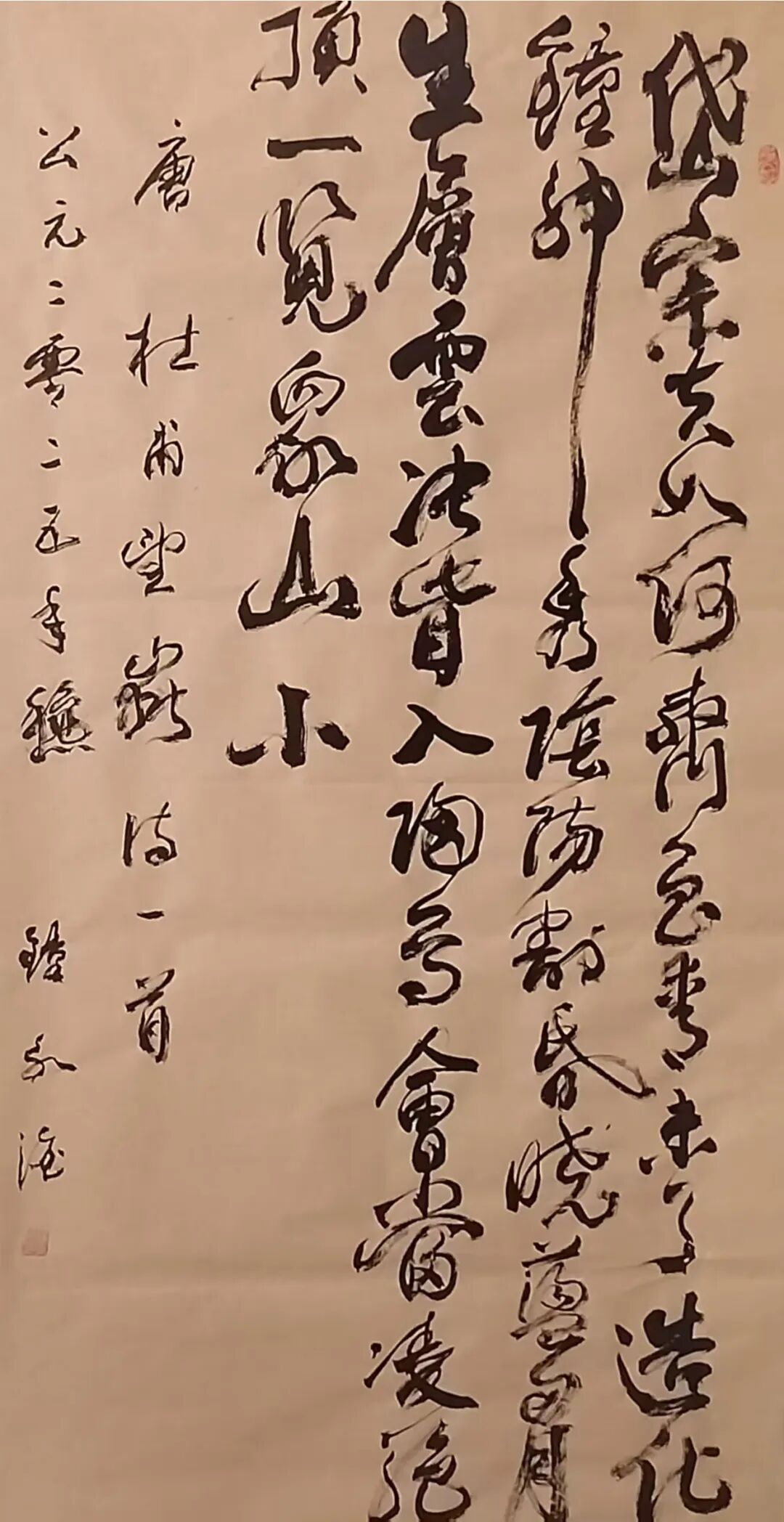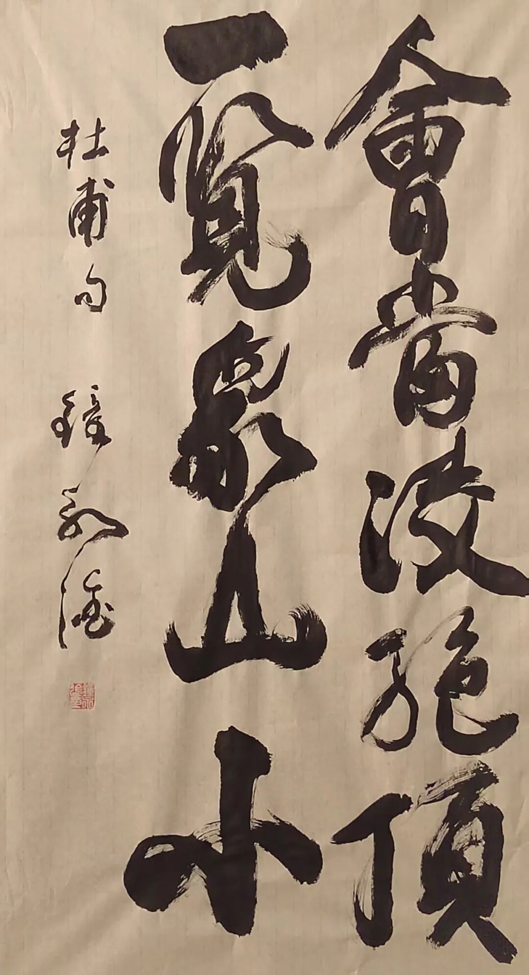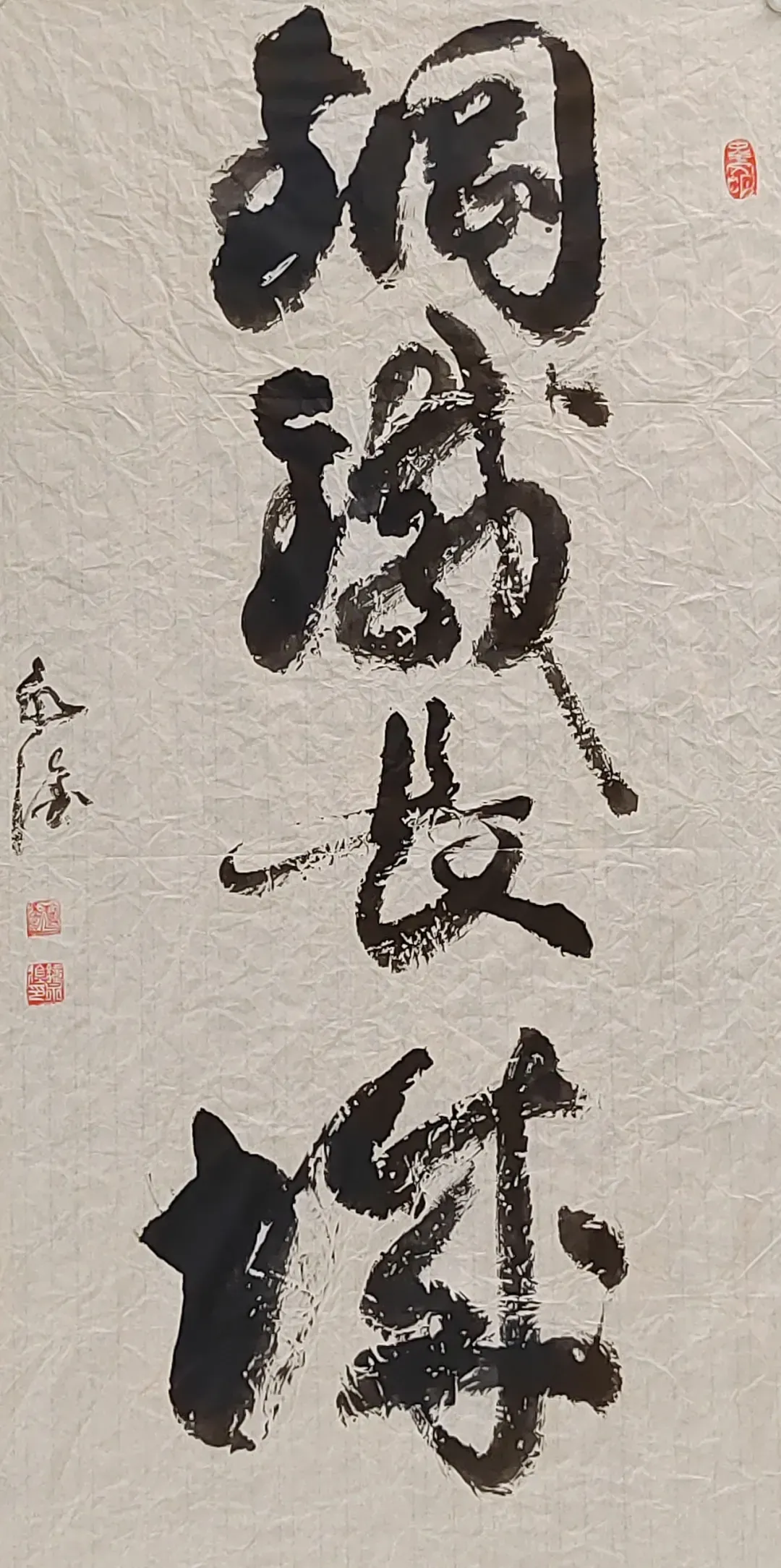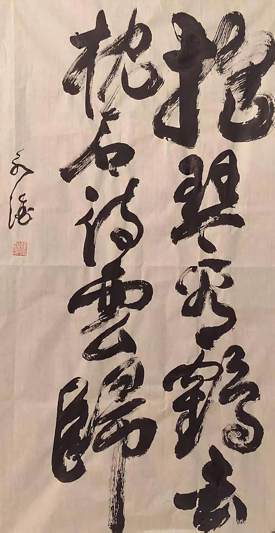 细观其作,笔走龙蛇却法度谨严,墨色淋漓而气韵生动,在迅疾的笔势中暗藏精微,在奔放的形态中蕴含内敛。尤为难得的是,他将长期修养所淬炼出的严谨心性,自然融入草书之奔放,使作品在展现磅礴视觉张力的同时,更经得起细细品读与推敲。这种"狂而不乱,放而有度"的艺术特质,正是其区别于时下浮滑书风的关键所在,也是其艺术个性的鲜明标识。