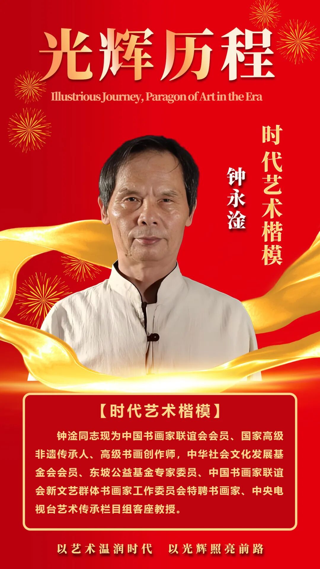 钟淦同志现为中国书画家联谊会会员、国家高级非遗传承人、高级书画创作师,中华社会文化发展基金会会员、东坡公益基金专家委员、中国书画家联谊会新文艺群体书画家工作委员会特聘书画家、中央电视台艺术传承栏目组客座教授,国宾礼特供艺术家、世界非物质文化遗产研究院副院长。