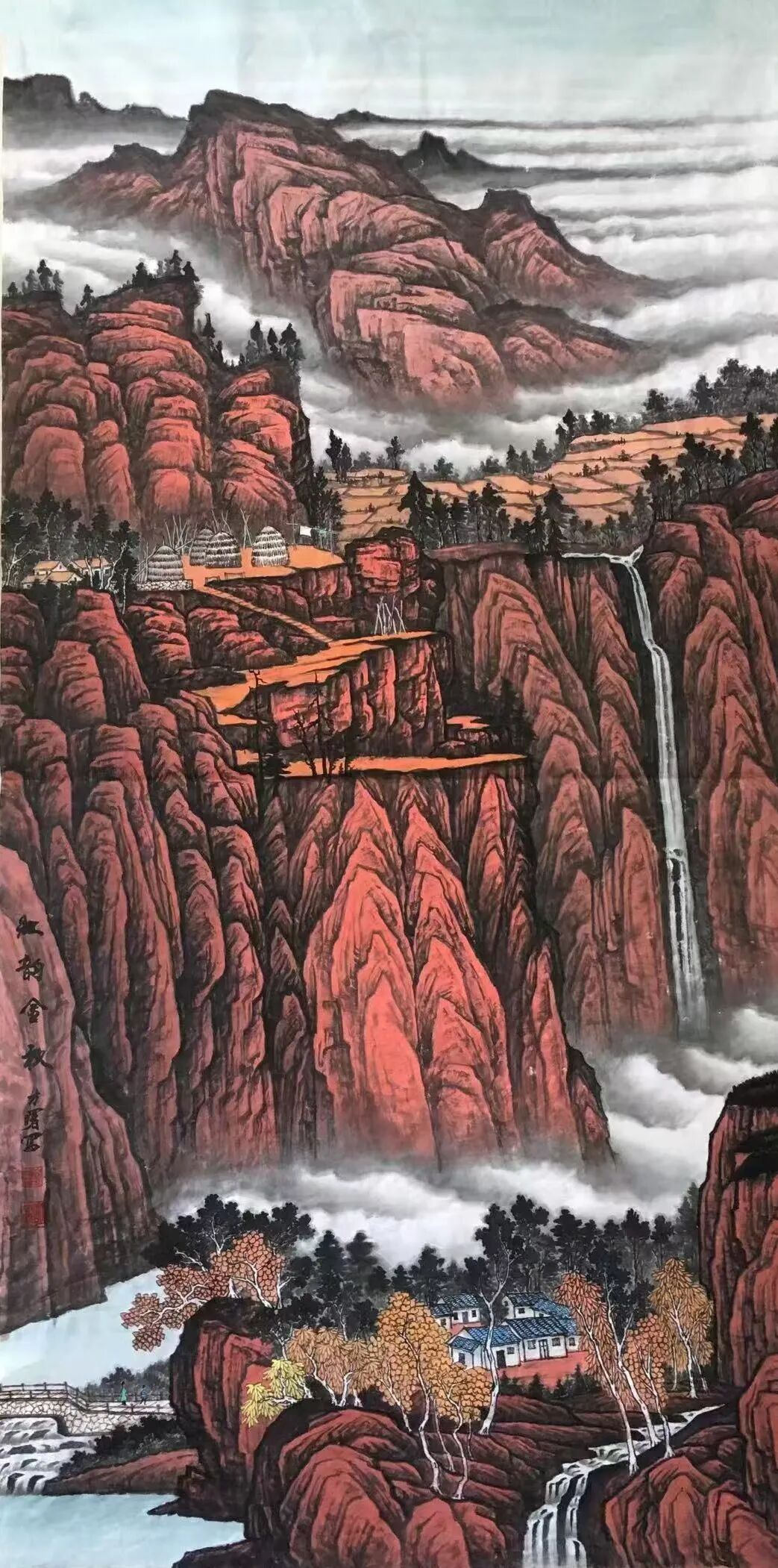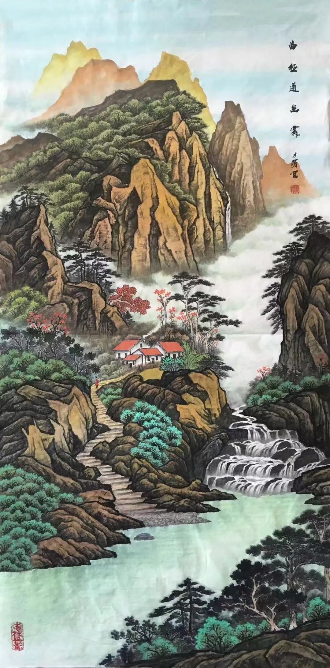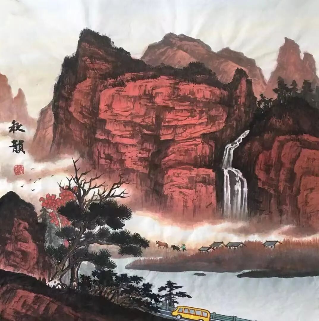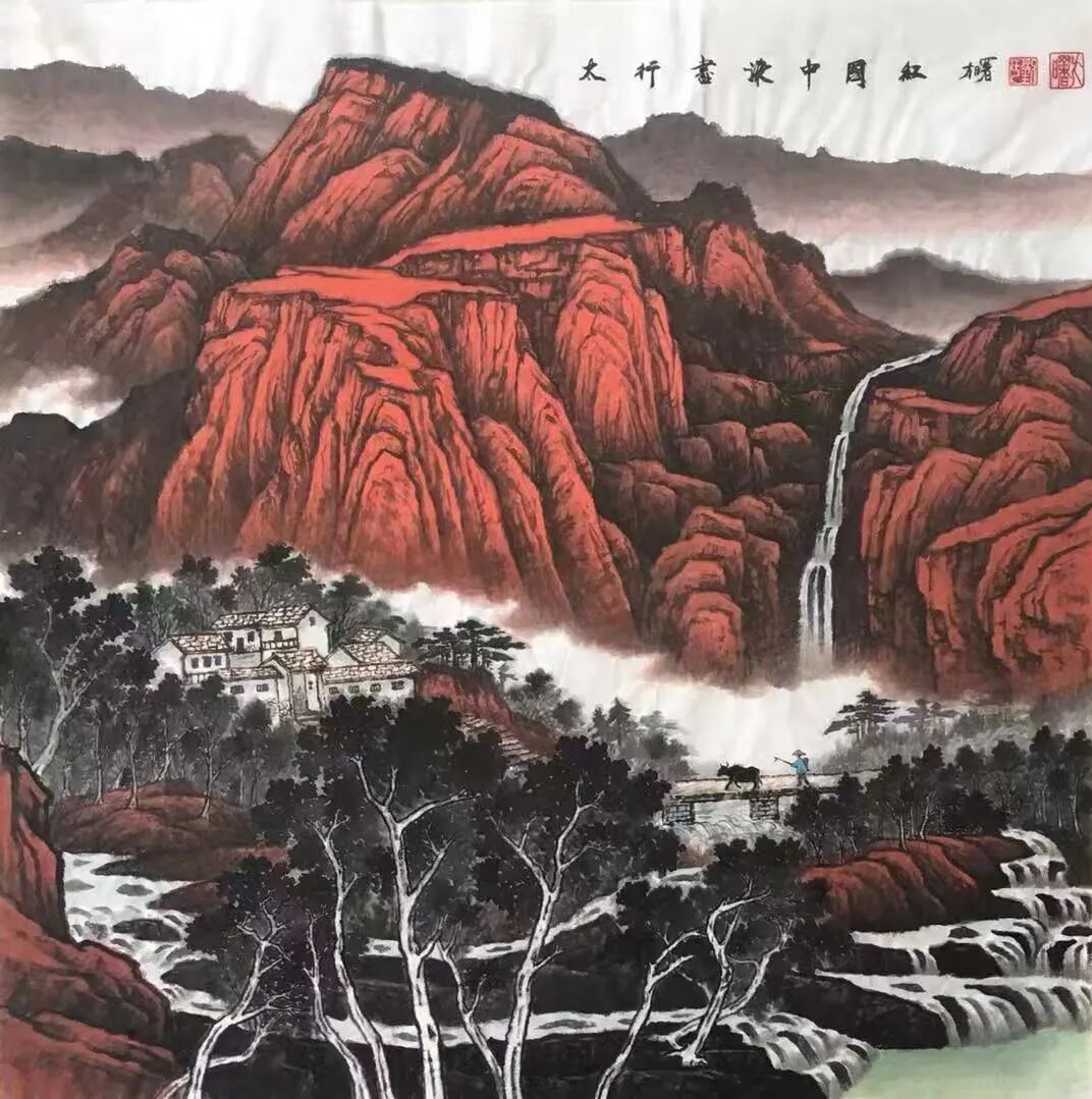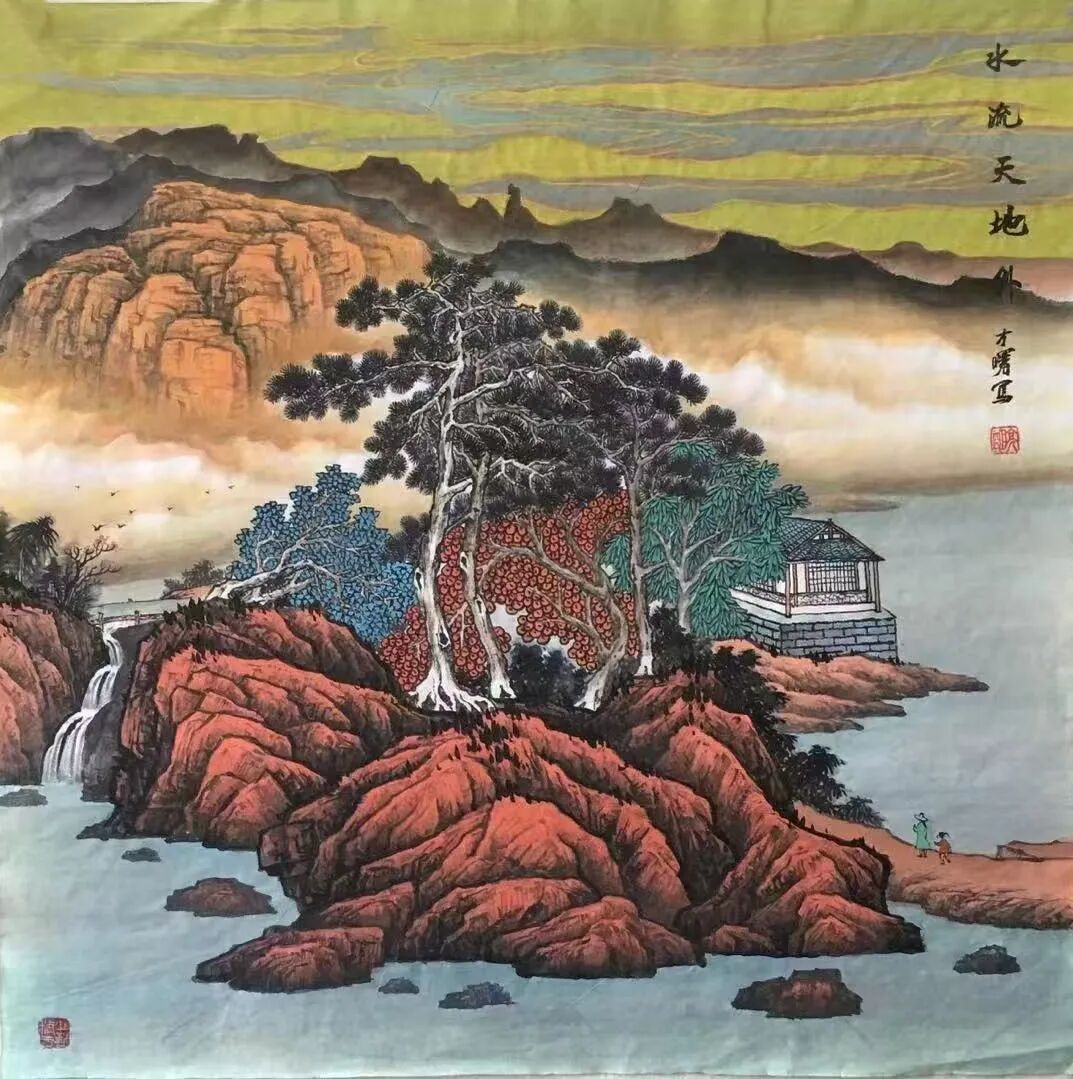 欣赏他的山水画之后,只觉一个“妙”字难以尽述!可以说,刘明亮在“色彩运用、构图布局”上,堪称高手!