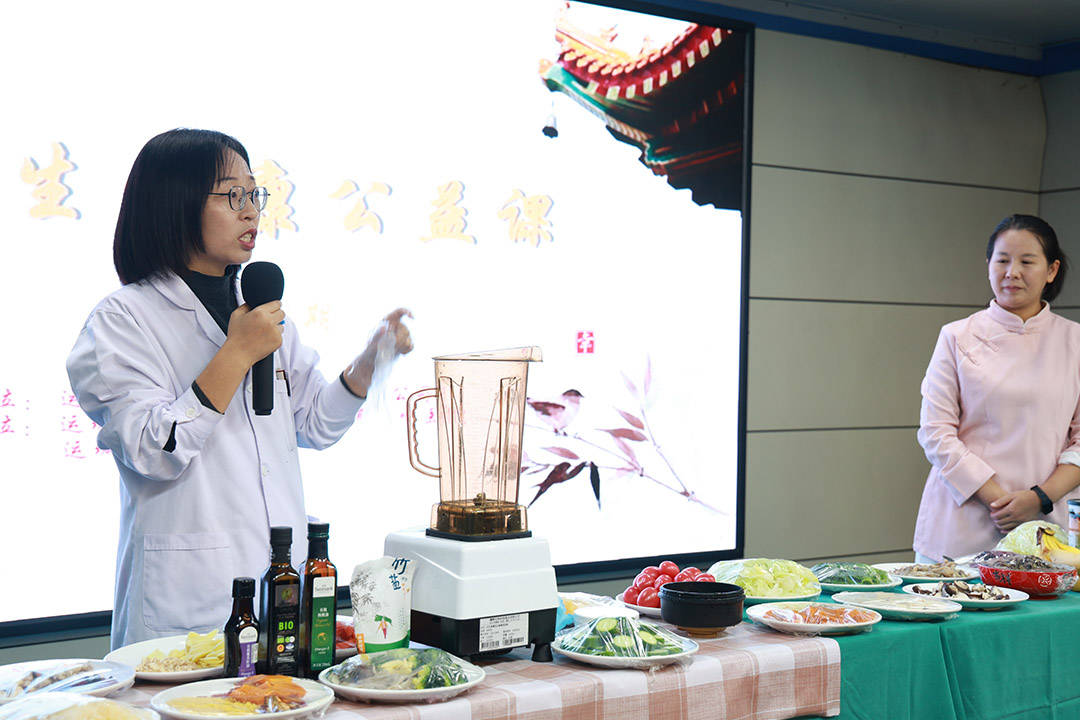 第二天下午,安生课堂特邀安国医院营养师邢晓娜莅临授课。邢晓娜凭借深厚的专业造诣与丰富的实践经验,首先以严谨且易懂的方式,系统讲解了健康饮食的核心要点,涵盖营养均衡搭配、不同体质的饮食适配等内容;随后,又通过现场实操演示,细致入微地传授了蔬果浆的制作技巧,从食材挑选、处理到加工步骤,都进行了详细解读,让学员们收获颇丰。