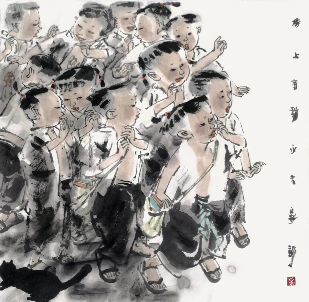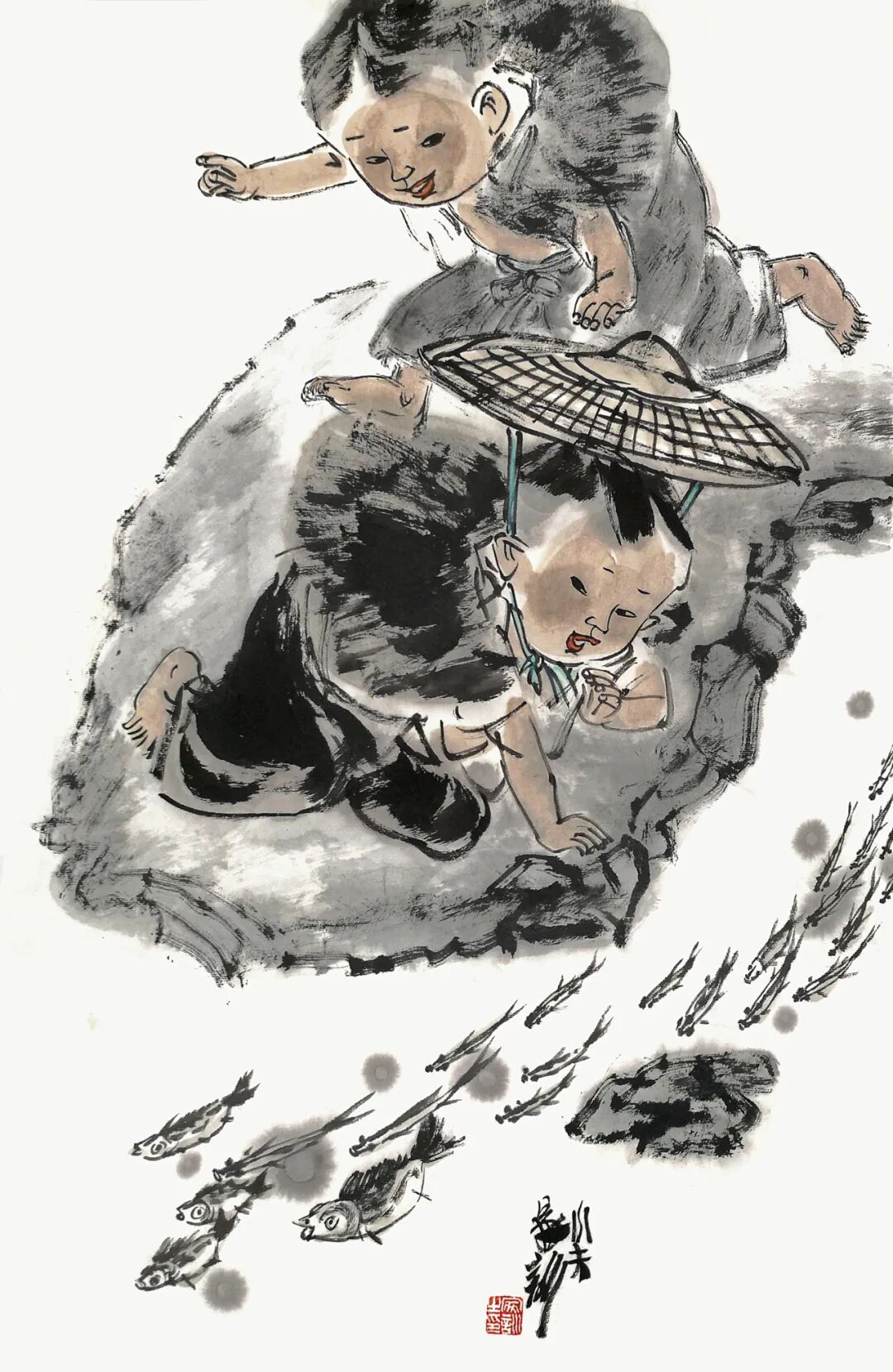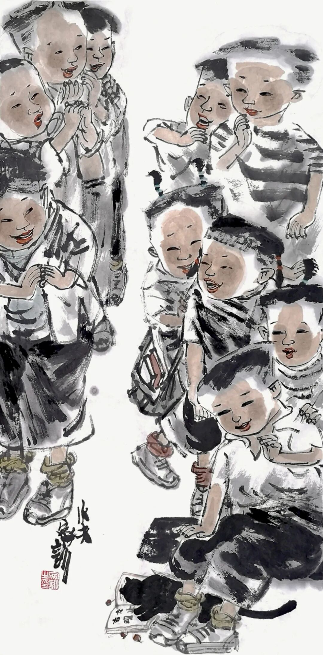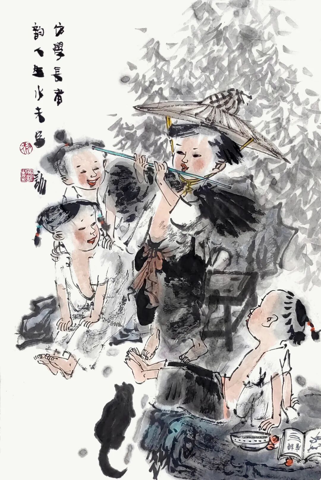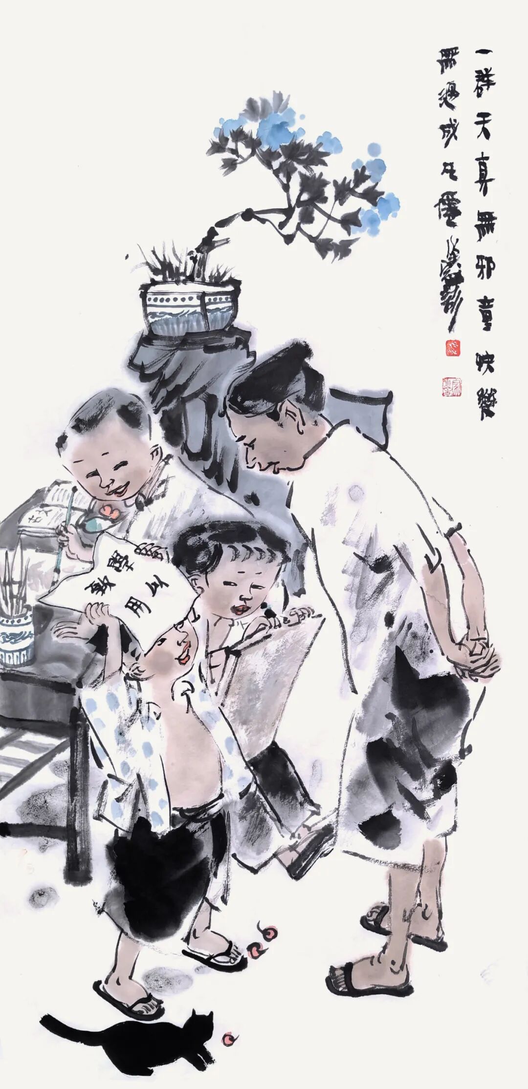 作品中浓郁的生活气息,让人倍感亲切,体现了他长期对中国画的积累,体悟和感触。不仅让人回忆起自己孩提时代的快乐时光,同时也通过对儿童的描绘来告诉人们,面对浮华应该随时保持一颗童心。