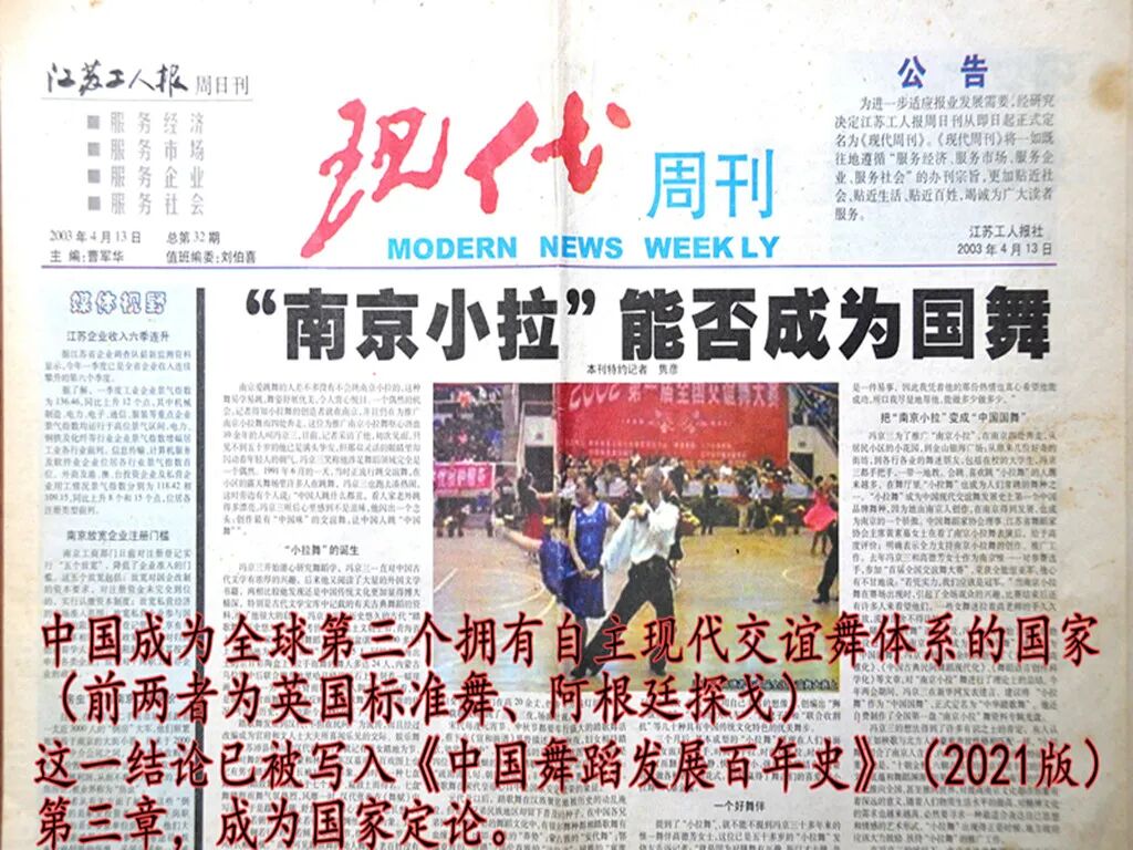面对1991年中国舞蹈文化面临灭亡的危机,冯京三先生毅然决然地投身于舞蹈事业,以坚定的文化自信和创新精神,首先树立起中国原创现代交谊舞的旗帜。继承了中国古典“踏歌”舞的优秀遗产,守正创新,创作了中国第一个现代交谊舞的舞种《中华踏歌舞》又名《南京小拉舞》。成功扭转了中国舞蹈文化面临灭亡的危机,为中国舞蹈注入了新时代发展的活力,也为民族文化复兴提供了重要实践范例。