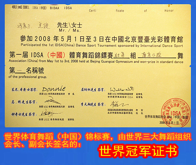 冯京三先生理论联系实际,从最基层的社区交谊舞比赛冠军,一路成为南京市的冠军,江苏省的冠军,全国交谊舞大赛冠军,直到世界体育舞蹈锦标赛冠军。他以最实践的事实,证明了中国原创现代交谊舞的先进性和竞争力,同时也证明了中国现代交谊舞一系列舞蹈文化理论最新成果的先进性。