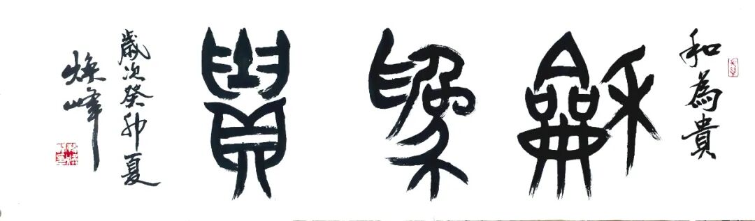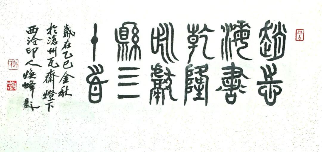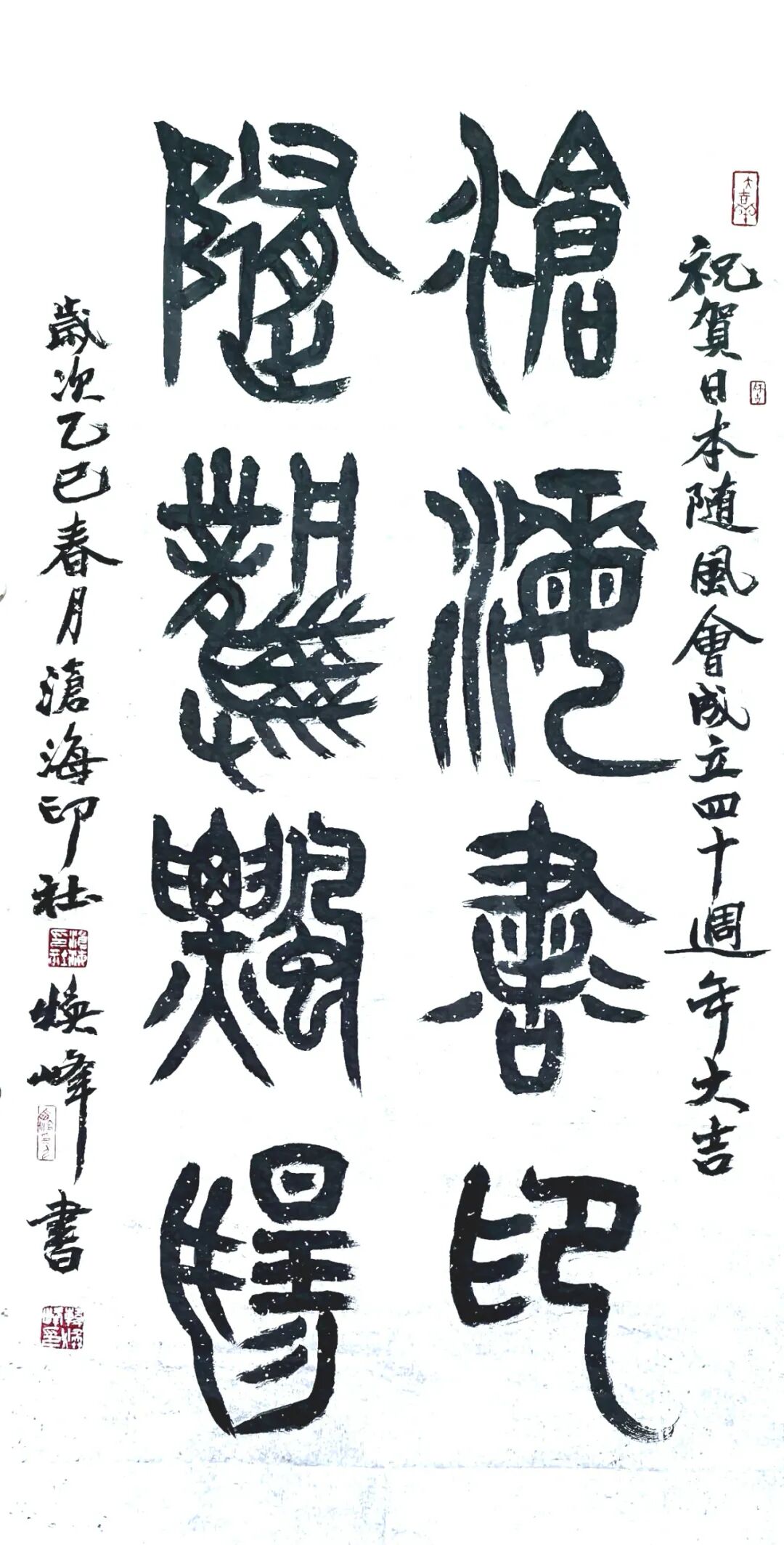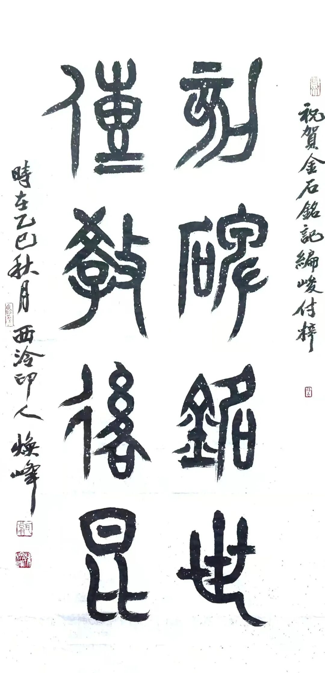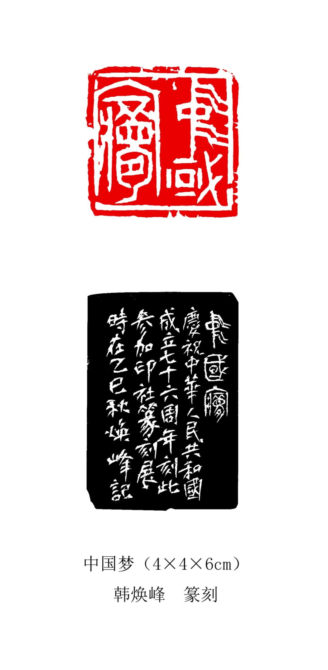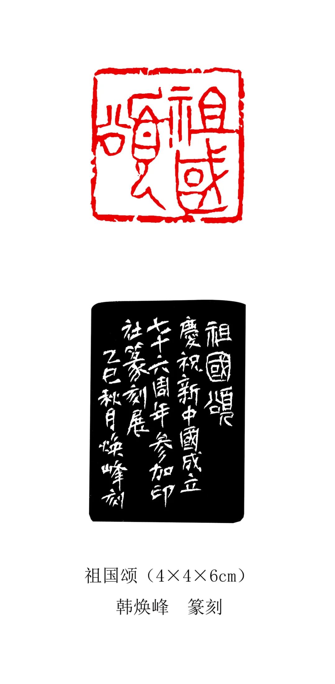 篆刻作品先后六次在日本展出,在韩国参加“第二届国际篆刻艺术大展”,篆刻作品搭载“神七”遨遊太空,杭州G2O国际峰会为南非总統刻“祖马”印作国礼,参加上海世博会等等,饮誉港、澳、台以及东南亚、法、西、巴等国家和地区。