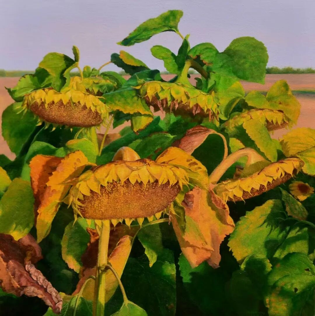 亚麻布油画《向日葵》,70厘米—70厘米,2025年作。