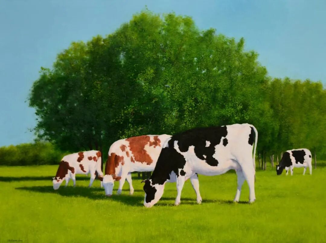胡苍鹰画画有一个特点,就是不会取巧,前几年看他的画就有这个感觉,构图和造型都很实在,笨笨的牛、羊•••••,完全是生活中的样子,树木、河流、渔船等场景也不修饰,但画得严严实实,好像是人来到现场。是看得到,摸得到的东西。就艺术而言,真正的真实是不存在的,即使是如实的刻画,也是以真实的个人体验为基础,在真实与体验之间的孰重孰轻往往决定真实的变形程度,或主观与客观的比例程度,传统绘画是理性与感性的完美结合。胡苍鹰的风景画作品正是他本人价值取向的选择。他画的题材,分明是让人不注意的房屋、角落、野草、旧渔船、海鸟等。