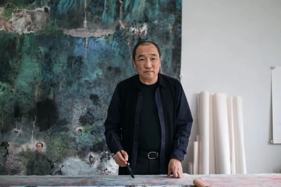 卢禹舜曾言:“山水是宇宙的倒影。” 秋分平分秋色,他的画亦平分天地——一半是敦煌壁画的神秘斑斓,一半是黄河奔涌的磅礴生机,最终在留白处归于“大道不孤”的哲思。