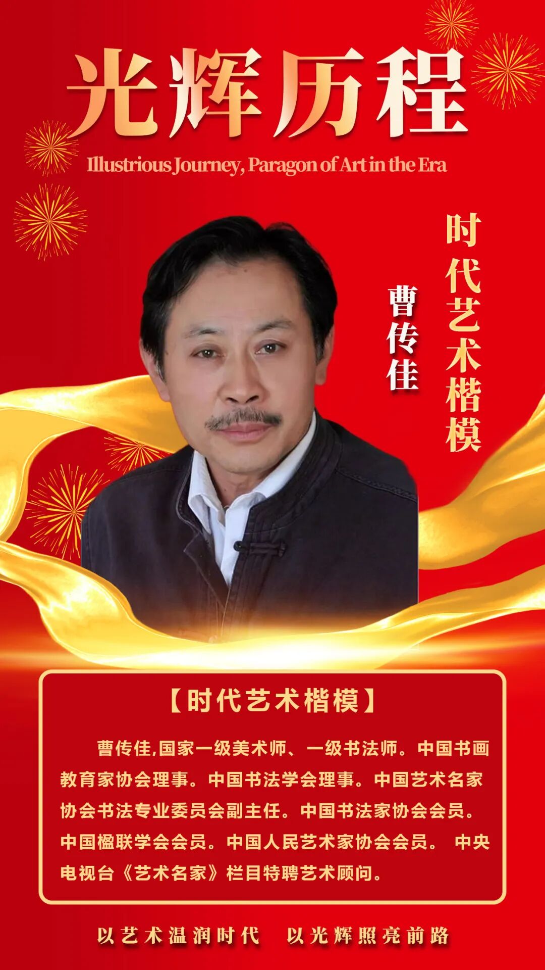 时代洪流,奔涌不息;艺术星河,光华璀璨。在中华民族伟大复兴的壮阔征程中,一代代艺术工作者以拳拳之心投身创作,以作品刻写时代,其个人奋斗的“光辉历程”,共同编织出中国艺术最为璀璨的华章。