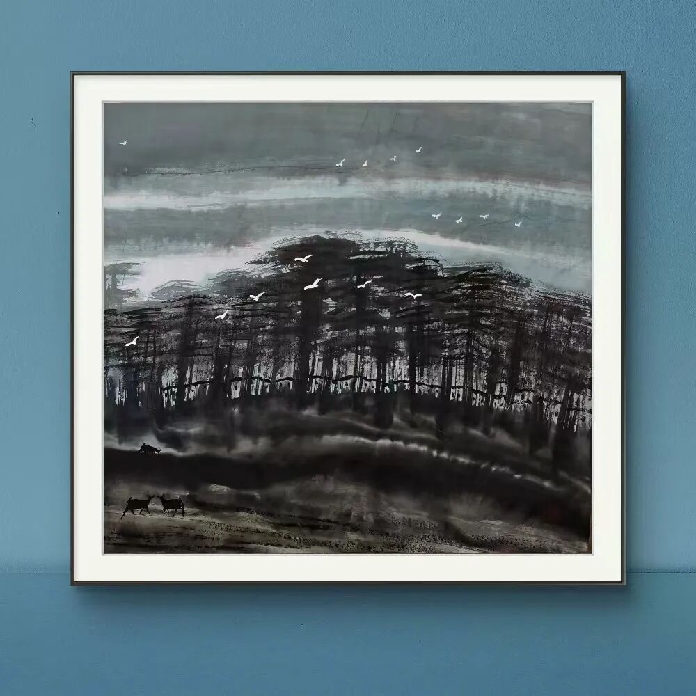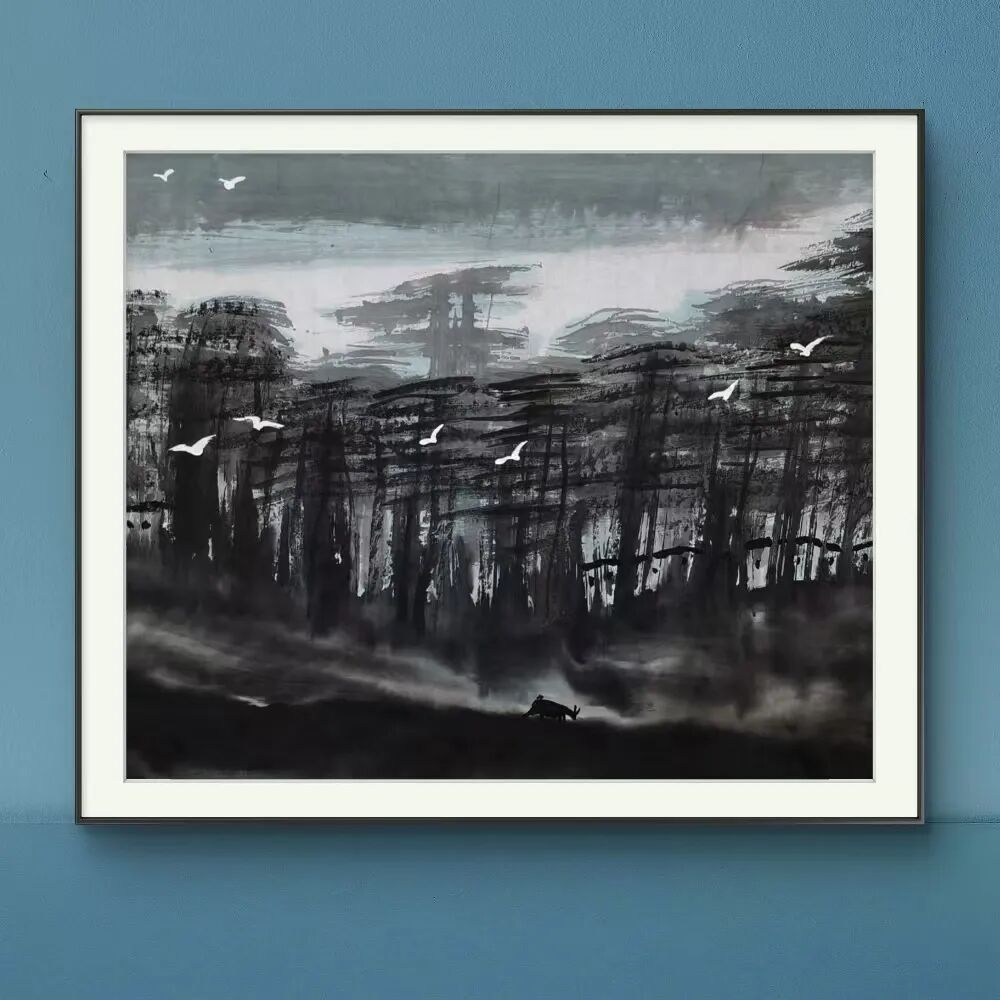 尽管余和平的画风极具个人特色,但他并非闭门造车,而是广泛汲取艺术养分。他曾进修于清华大学美术学院,师从著名画家王阔海、周小愚,在传统笔墨技法上打下坚实基础。同时,他又不拘泥于成法,大胆探索泼墨、积墨、破墨等技法,使作品既有传统的文人意趣,又有现代的视觉冲击力。他的“湘土画派”并非简单地复制地域风貌,而是通过个性化的艺术语言,让湖南山水的神韵跃然纸上,展现出一种既传统又当代的审美表达。