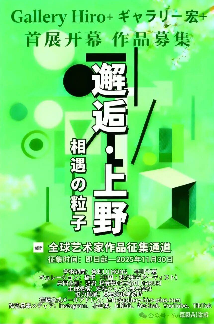 ギャラリー宏+ Gallery Hiro+ 将于2025年 [秋季],在东京艺术心脏——上野,全新启幕。为庆祝开幕,我们特此举办首展,我们深信,艺术是超越国界的语言。ギャラリー宏+Gallery Hiro+的使命,正是搭建一座连接中日两国深邃文化艺术与全球当代语境的桥梁。这不仅仅是一次展览,更是一场宣言:我们渴望成为中日两国丰厚文化遗产与全球多元艺术浪潮相遇、对话的场域。画廊之名“宏+”中的“+”,正象征着这份连接东西、融合传统的无限可能。立足上野这一日本文化的十字路口,我们的愿景是打造一个充满活力的国际平台,致力于将日本独特的审美与哲学推向世界,同时将全球前沿的艺术思潮引入此地,开启一场跨越疆域的文化“双向旅程”。 现面向全球艺术家公开征集作品。我们期待充满独创性、能与世界对话的当代艺术作品在此交汇、在此相遇。
