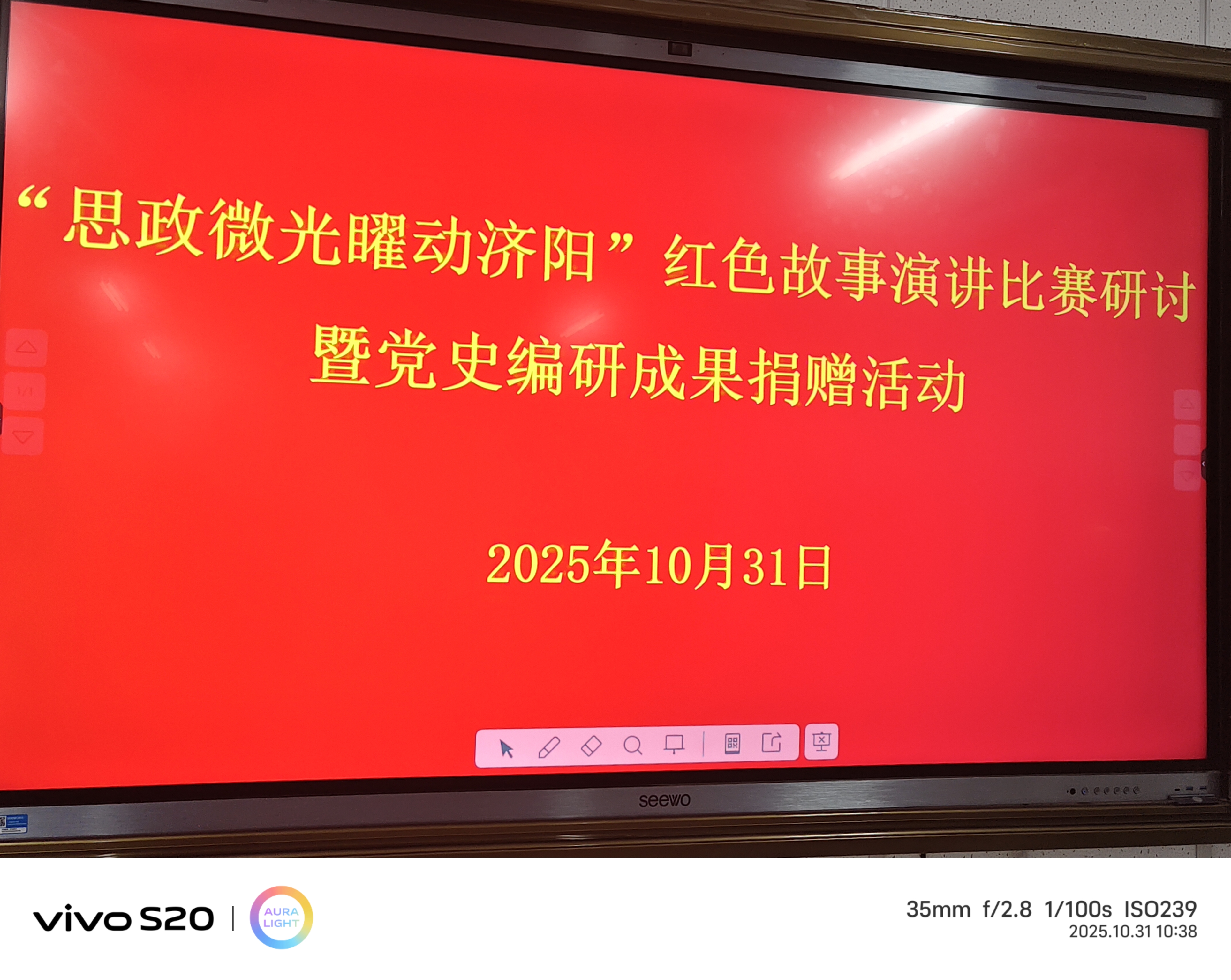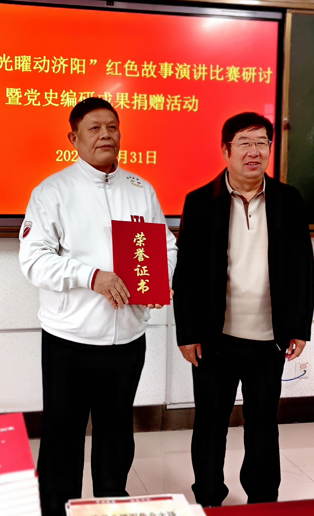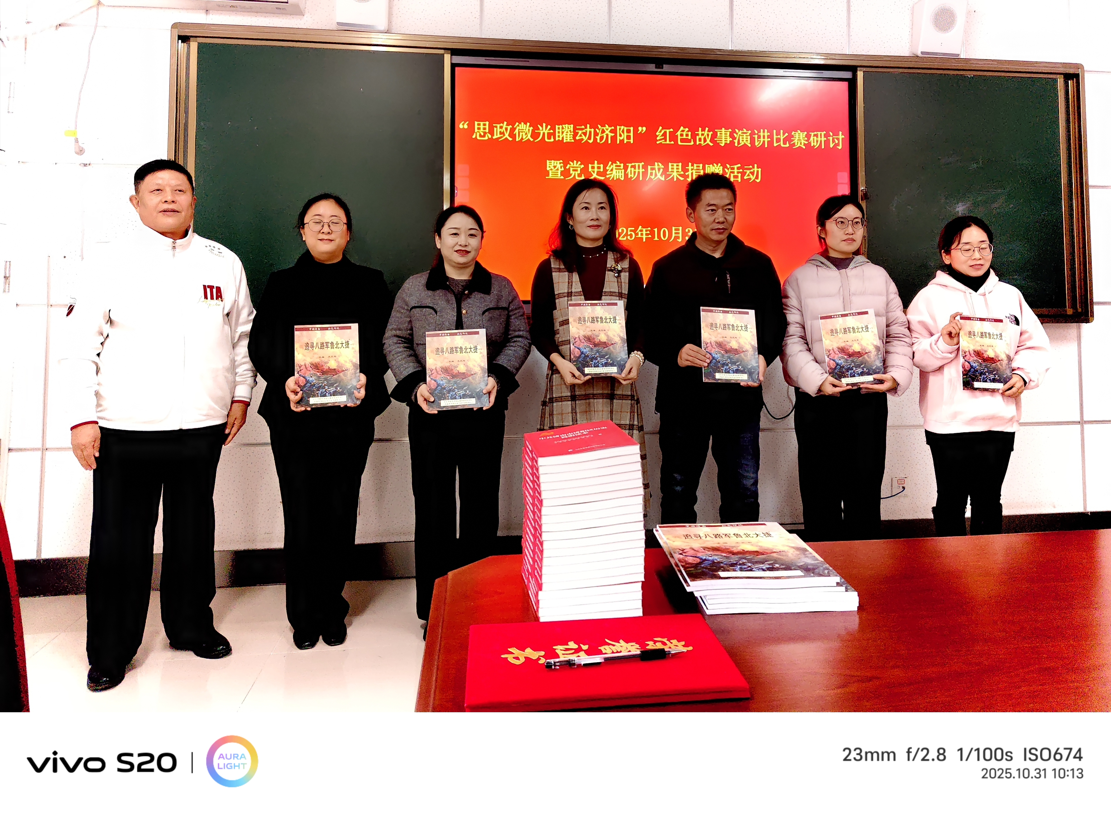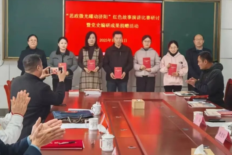 10月31日,济阳区委党史研究中心主任王四彦、副主任肖端良,区地方史志专家库成员王文忠,将《追寻八路军鲁北大捷》《中共济南市济阳区历史简明读本》两部红色书籍送到济阳区教体局“思政微光·曜动济阳”研讨会现场。区教体局党组成员、区体育事业发展中心主任、区少儿体校校长杜光军,区教体局党组成员、副局长张文尧接受捐赠。