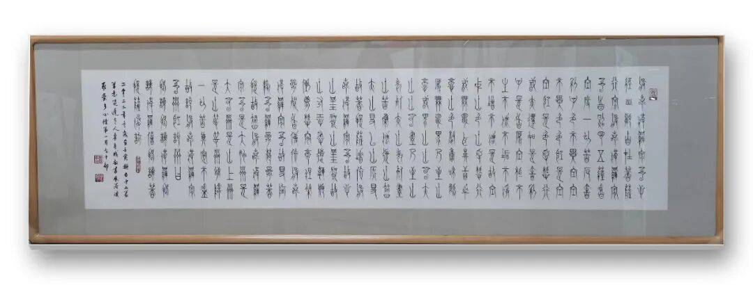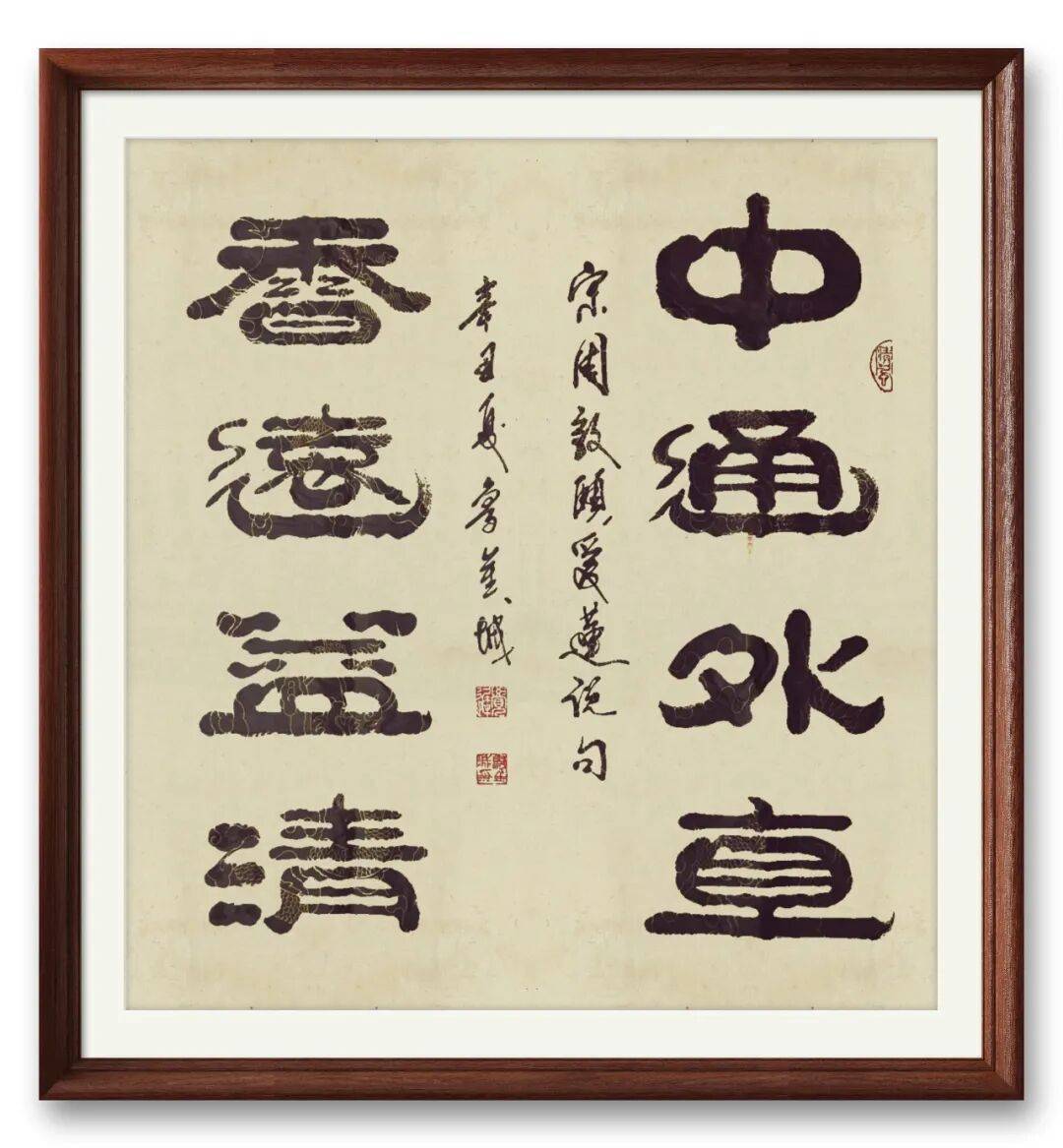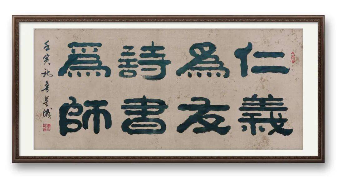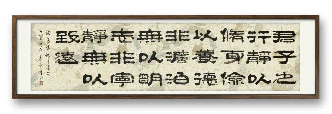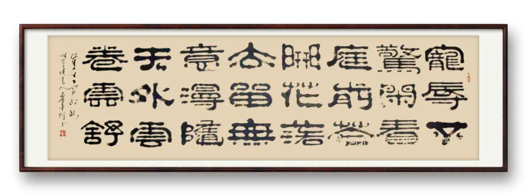 其隶书创作尤为称道。深植汉隶正典气象,蚕头燕尾藏古雅,却不拘古法,融入健朗时代风范。通幅笔墨平和舒展,无俗笔粗鄙、无刻意标新,笔触典雅、笔线交融,字字圆盈见方劲,堪称正雅典范。