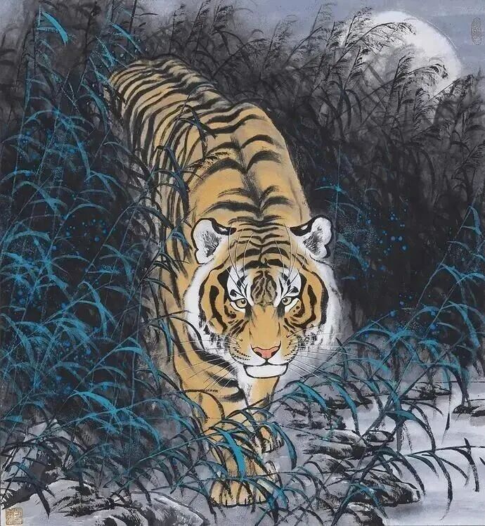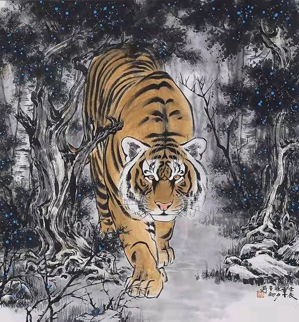 数十年来专注国画创作。在花鸟画领域功力深厚,笔墨精到,其尤擅画虎,作品兼工带写,墨色圆润,在“虎界”风格独具,享有盛誉。作品多为中外收藏界和专家学者收藏。