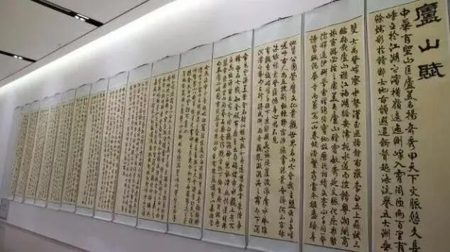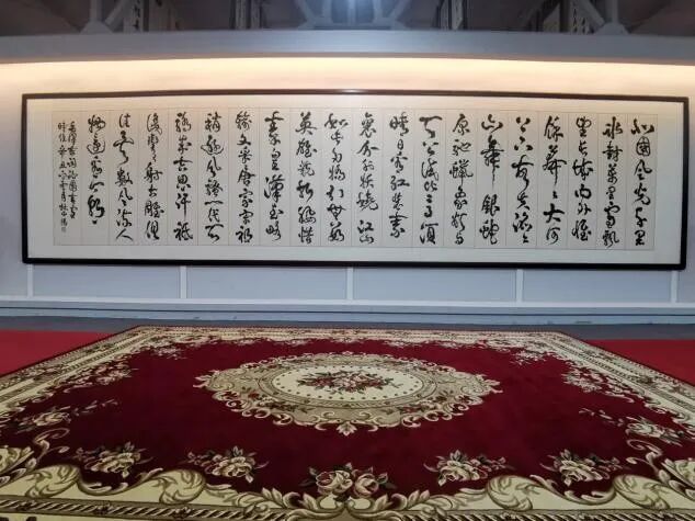 他的作品线条刚劲有力,犹如苍松扎根悬崖,展现出坚韧不拔的力量;结构疏密得当,似山水画卷,有开合有致的韵律;笔法灵动多变,时而如行云流水,时而似惊涛拍岸,充满了节奏感与动态美。如他创作的巨幅作品,无论是高100米、宽12.8米,总面积达1280平方米,书写毛主席《沁园春·雪》的巨作,还是17条屏的《庐山赋》、24条屏的《兰州赋》,都展现出大气磅礴、震撼人心的气势,同时又不失温润秀雅的韵味。这种独特风格的形成,既源于他对传统书法的深入研习,对历代名家如王羲之、孙过庭、黄庭坚等的取法,也得益于他丰富的人生阅历和对自然、生活的深刻感悟。