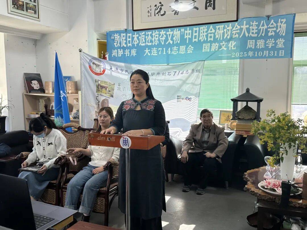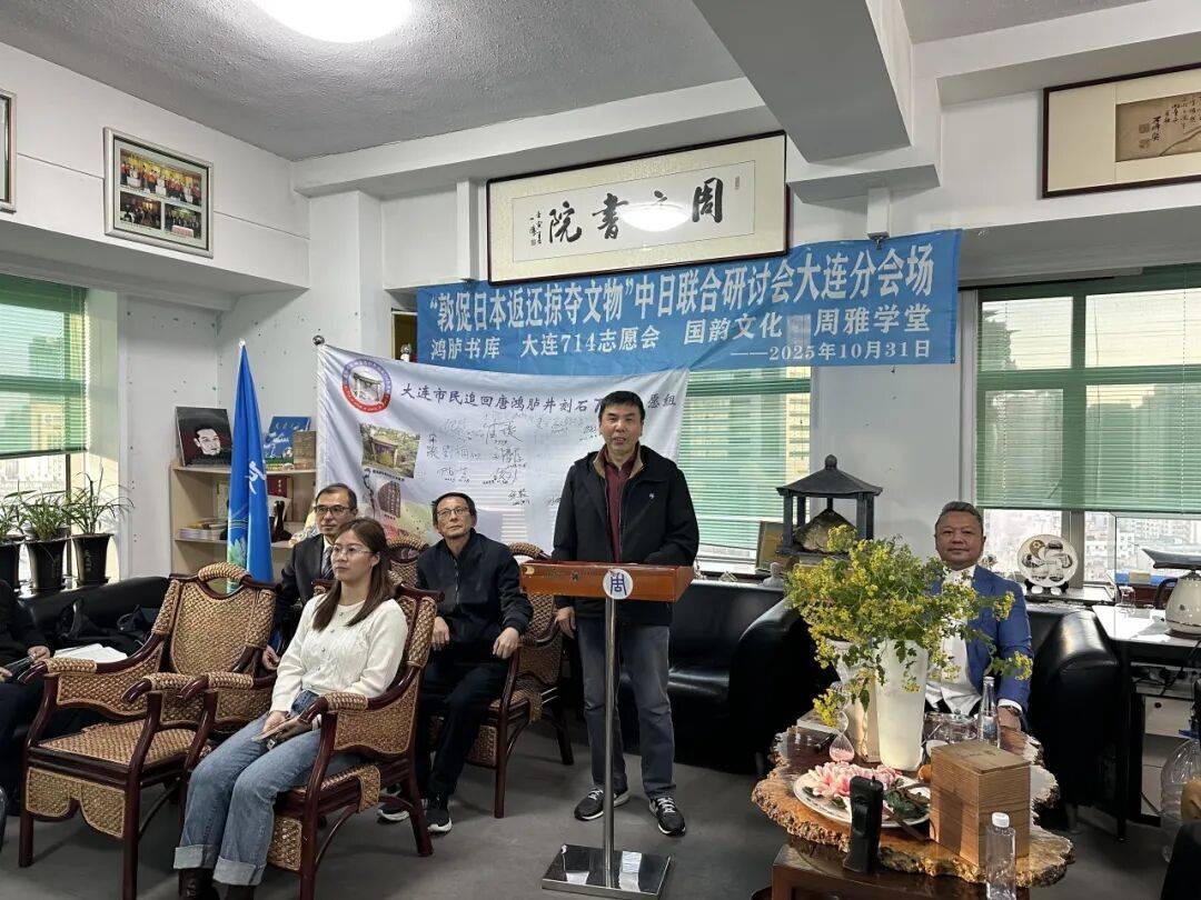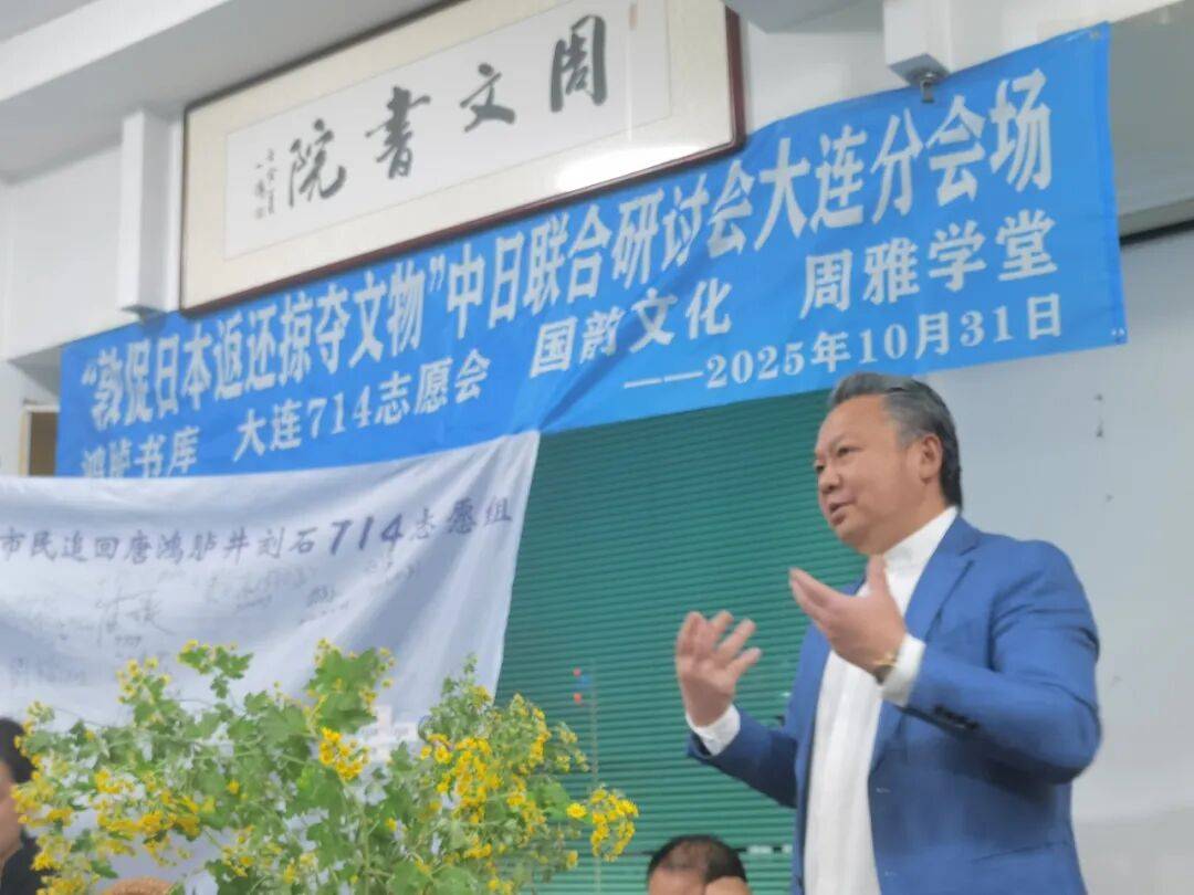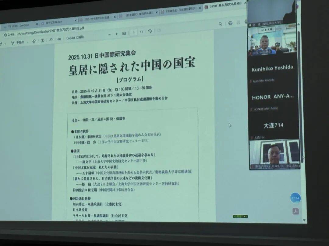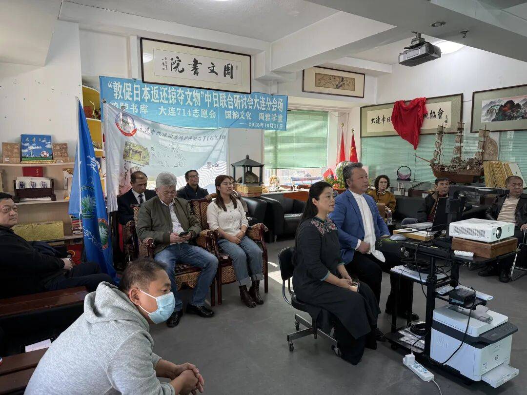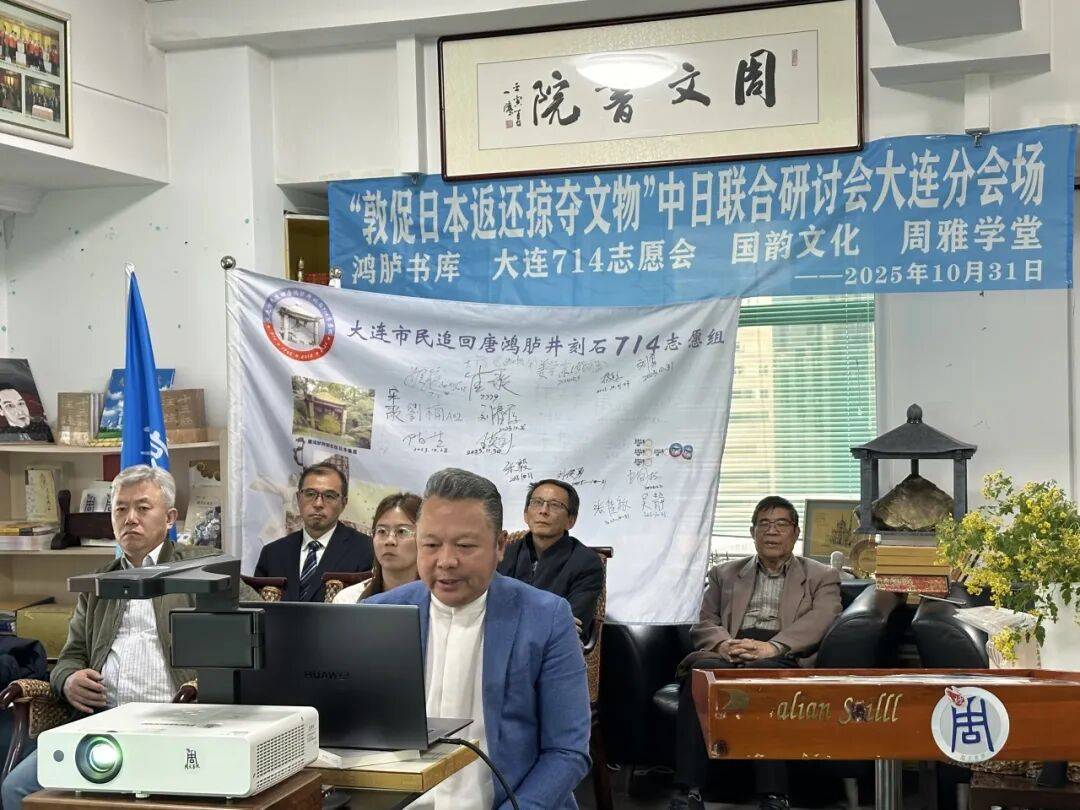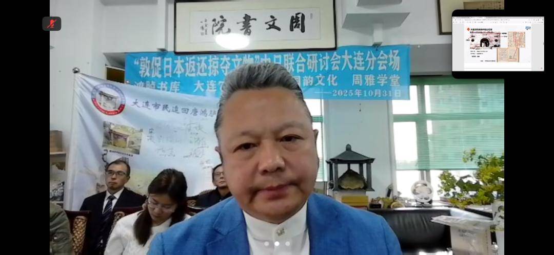 2025年10月31日下午,“敦促日本返还掠夺文物”中日联合线上研讨会顺利举行,会议设东京日本国会众议员会馆主会场与大连分会场,其中大连分会场由大连714志愿会、国韵文化、鸿胪书库、周雅学堂联合承办。来自中日两国的专家学者、志愿团体代表齐聚云端,围绕流失日本文物返还议题展开深入研讨,为推进文物追索工作凝聚共识。