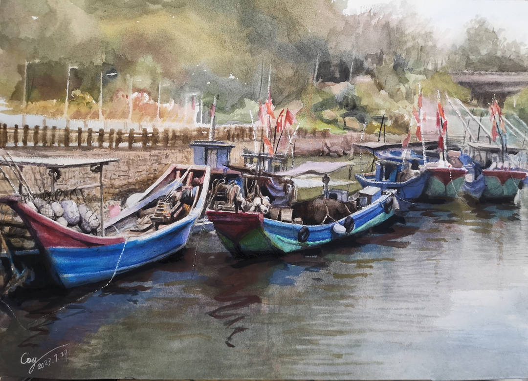 为了进一步提升绘画水平,我积极参加各种高研班学习。曾多次参加黄中羊、金英善、中国写实水彩写生平台的写生学习活动。在集体写生的浓厚艺术氛围中,与众多艺术名家交流切磋,共同捕捉自然与生活中的美好瞬间,将其融入画中。