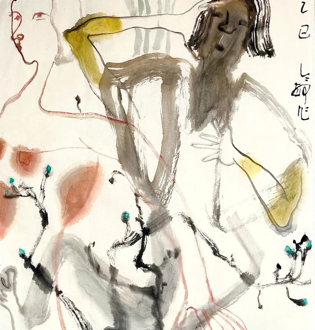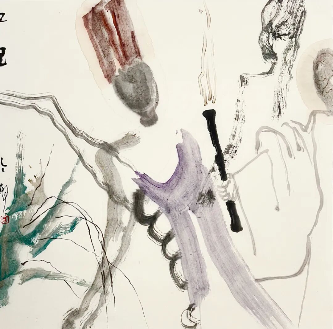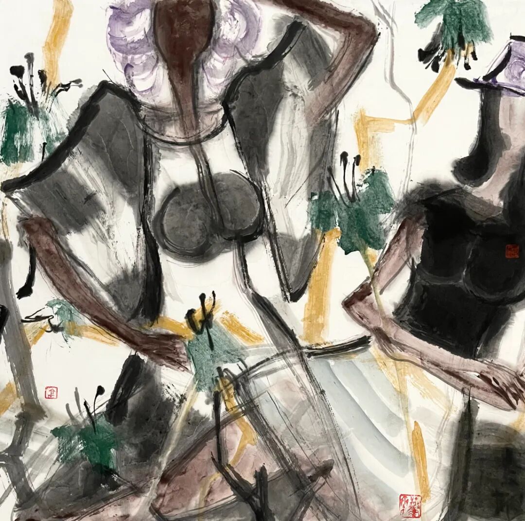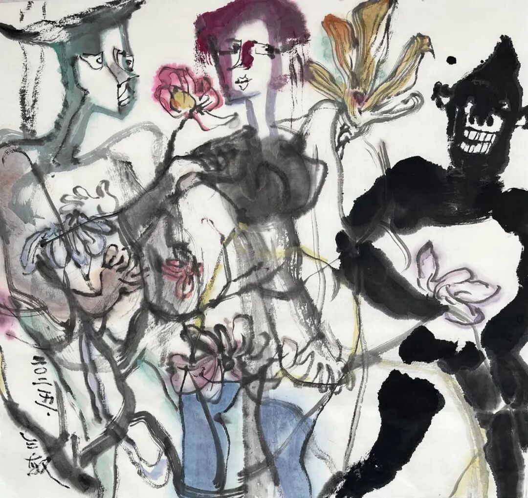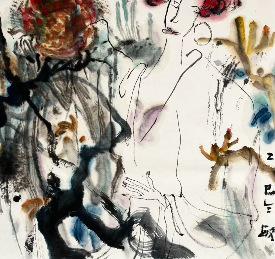 如在他的一幅作品中,人物身姿以抽象线条呈现,举手投足间似在捕捉一种无形的力量,又或是在与内心深处的自我对话。墨色的浓淡干湿,线条的粗细曲直,无不透露出画家对人物内心世界的深刻洞察与独特诠释。