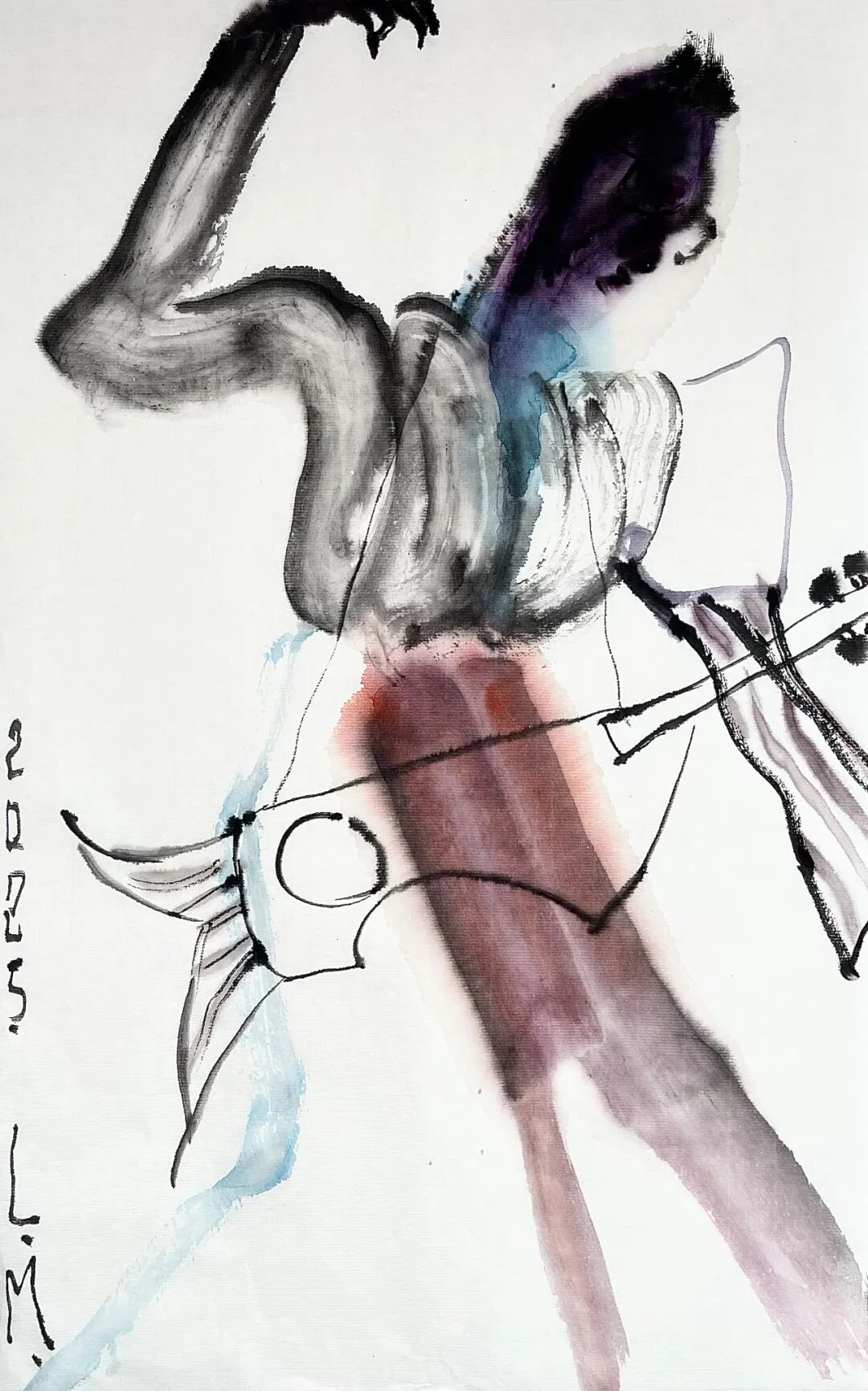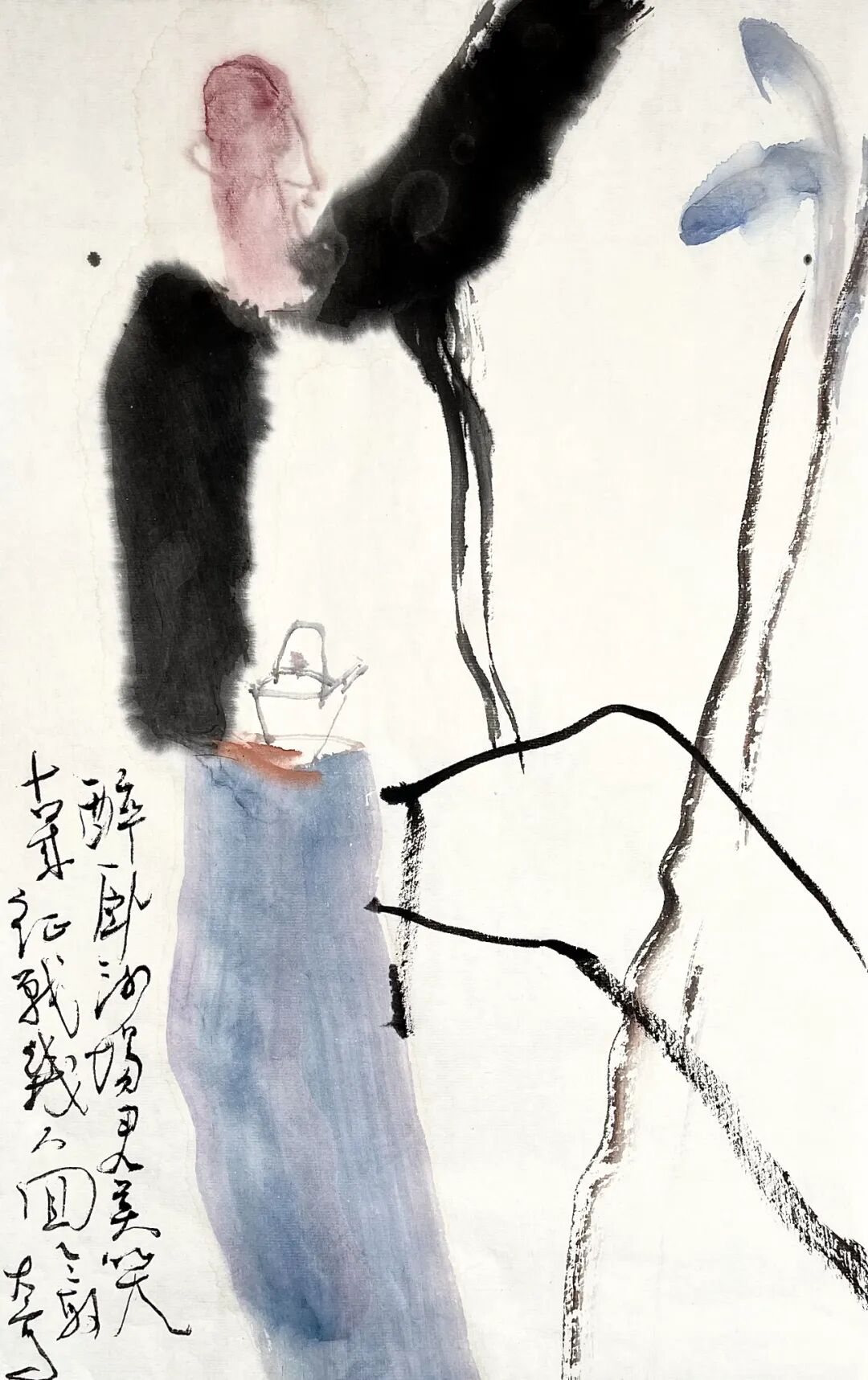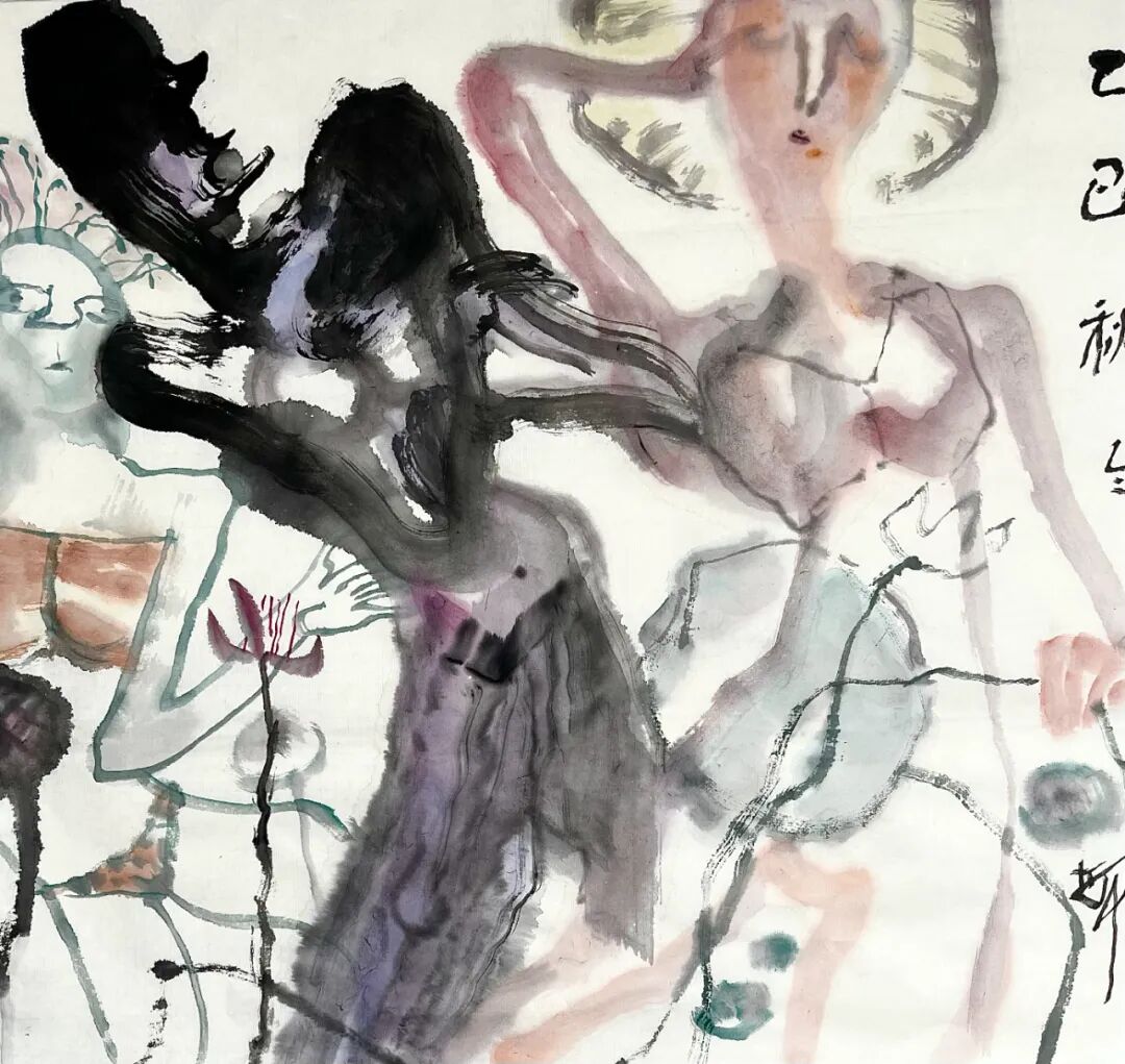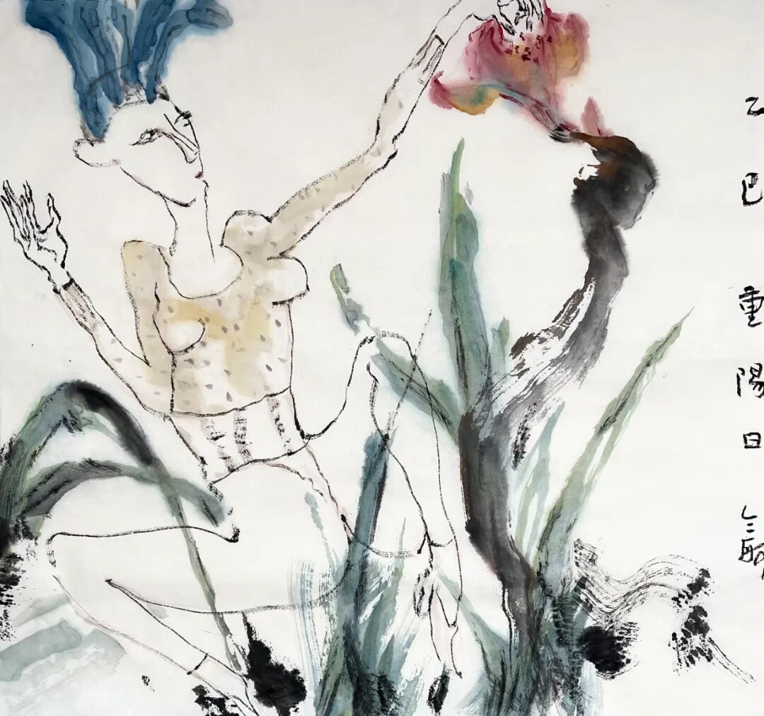 如在他的一幅作品中,人物身姿以抽象线条呈现,举手投足间似在捕捉一种无形的力量,又或是在与内心深处的自我对话。墨色的浓淡干湿,线条的粗细曲直,无不透露出画家对人物内心世界的深刻洞察与独特诠释。