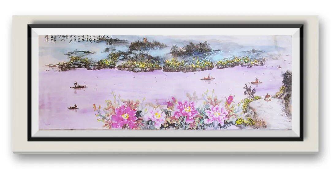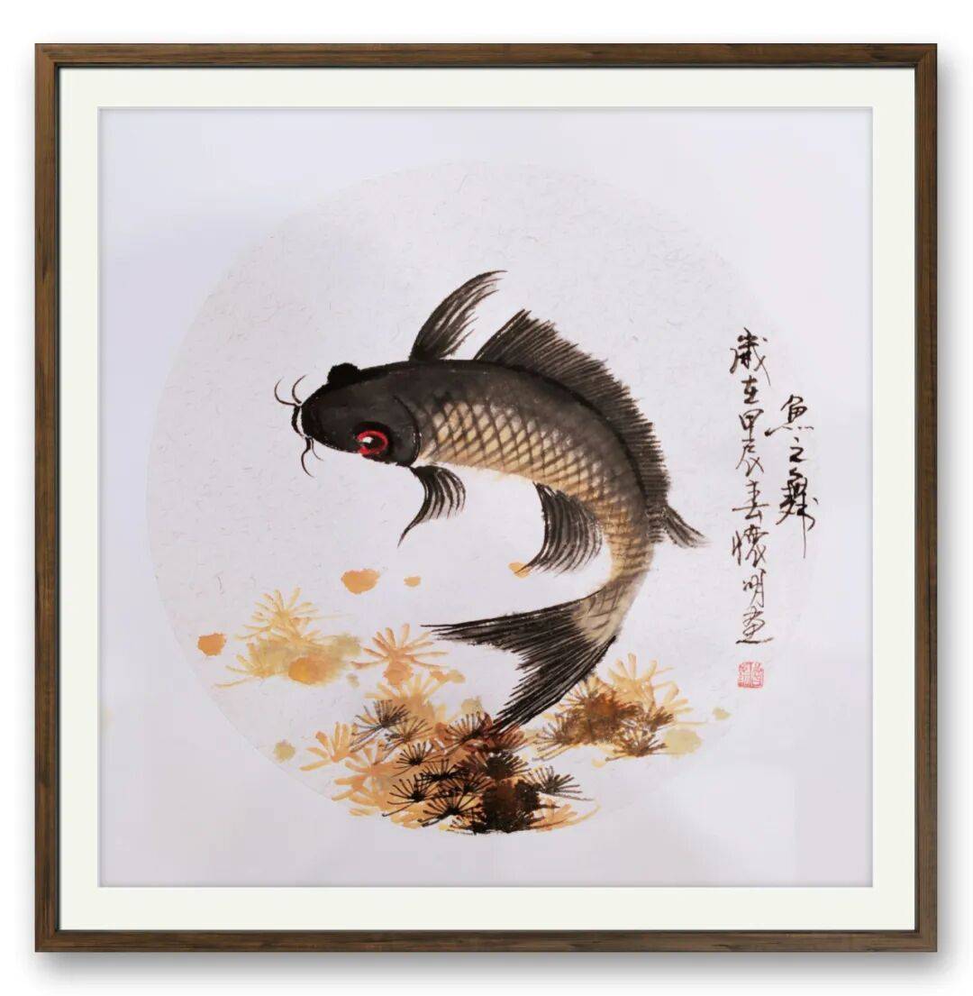泼墨如流云奔涌,藏巧于拙;点染似莲开刹那,流韵无声。曾怀明先生的书画创作,深得道法自然之精髓,于挥毫落墨间,既见诗境悠远,又闻乐律铿锵,将诗、情、画、景、物熔于一炉,臻于天人合一的至妙之境。其笔下游鱼尤显神工,笔法遒劲如孤松挺秀,一蹴而就间,鳞鳍灵动、宛若跃然,既有出水腾渊之姿,又含悠游自在之趣,寥寥数笔便勾勒出生命本真的鲜活。