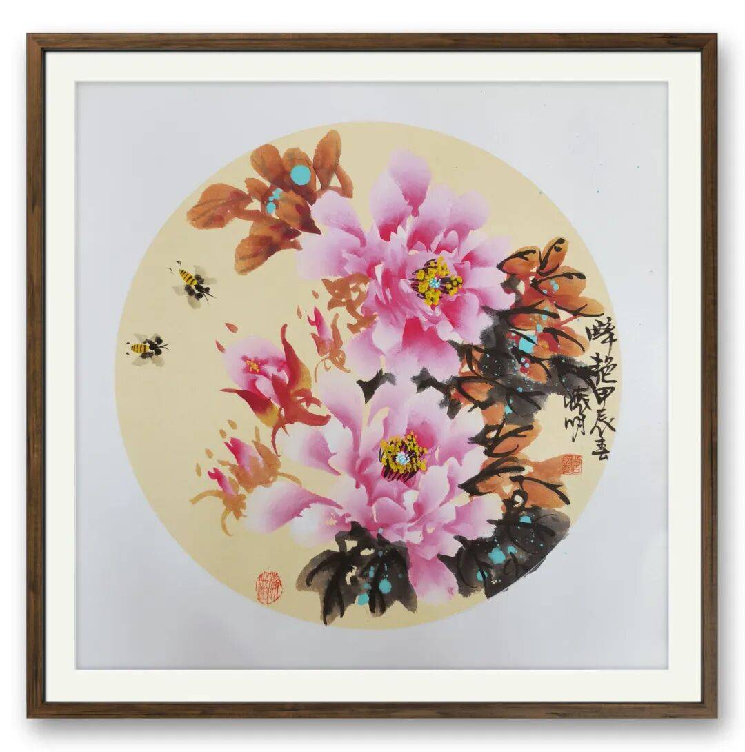 中国花鸟画自古便有寄情寓意、教化人心之传统,作为时代美的创造者,曾怀明先生深谙此道。他以积极健康、祥和美好的艺术表达感化观者,于一花一叶、一鱼一虫中,传递对自然的热爱、对家国的赤诚、对美好生活的向往。其创作既延续了花鸟画抒情言志的艺术特质,又以当代视角诠释人与自然的和谐共生,让传统题材焕发出鲜活的时代精神,于笔墨流转间映照社会生活的温度与厚度。