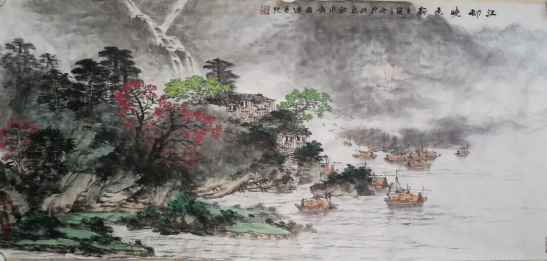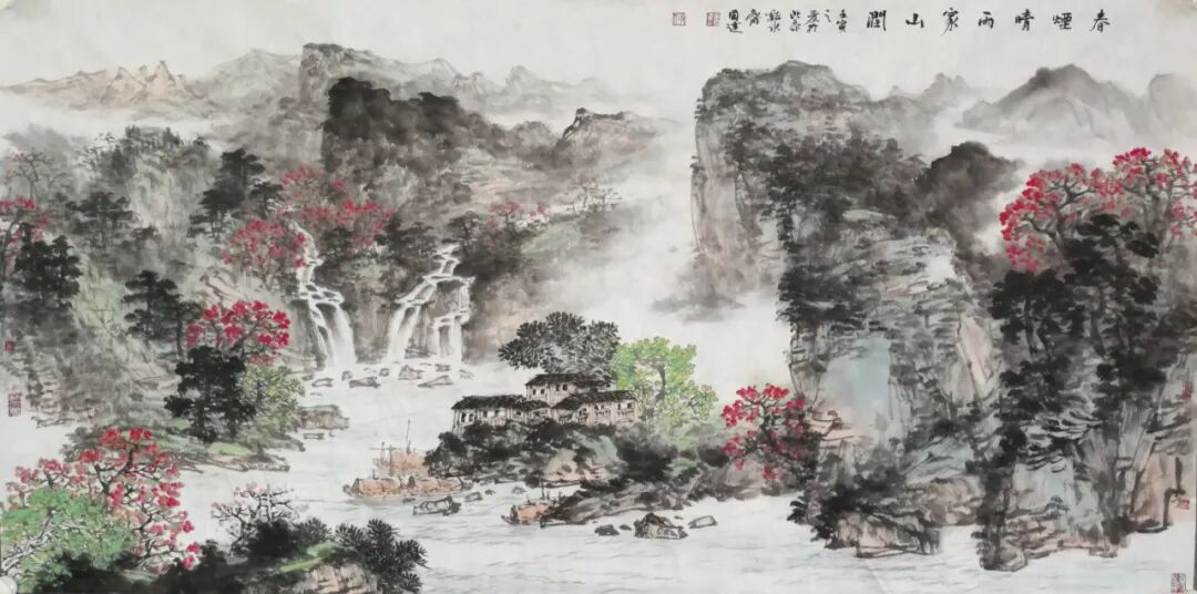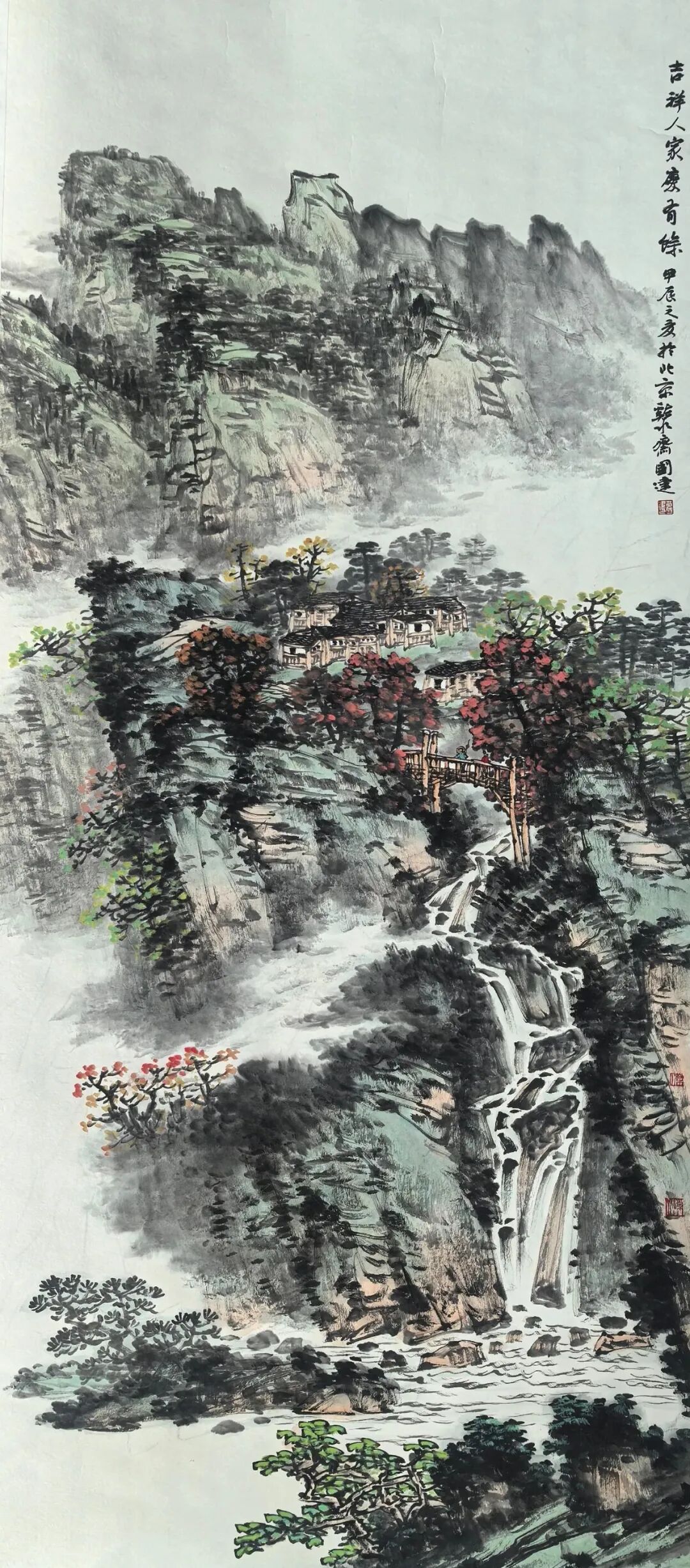 记得年方十八时,荣幸入军旅,走进清华园,常奔波于画院与美术馆之间,饱览名家大作,体会浓郁艺术氛围,在传统与创新之中开阔眼界。时与名家相遇,目睹高手挥毫泼墨,意趣天成,雅俗共赏,得以大启心智。寒来暑往,潜心深造,研读其专业,南宗北派悉熟。后拜名师门下二十春秋,受益匪浅,巩固之余,频繁与自然对话。年少之记忆已渗透笔端,时而自然流露于摩写,后居京城数十载,多游历北方诸山,雄浑苍劲,且极富体积感,可谓画山摹本,故不止营造。索取源泉,或秀或浑,决于感受,无论气势与浑厚,恬静与清雅,来自身心造化。四十余载,不逐名利,坚信功到自成,秃笔已成捆,胸中有山水之魂。 笔从书法得益,画为传承为宗,山水创作心先有,形似易,神似难,意境求写不可工,写意生,工则匠,取舍追新奇,气韵方生动。绘画语言,笔墨符号,探求创新皆本分。岁月至今,一甲子有余,在社会虽有点名声,还及一些闲职,但却感慨万千。欣慰的是其山水鸿篇巨制,被悬挂多个社会高端场所、外交使馆,更得社会贤达赏识收藏其作。