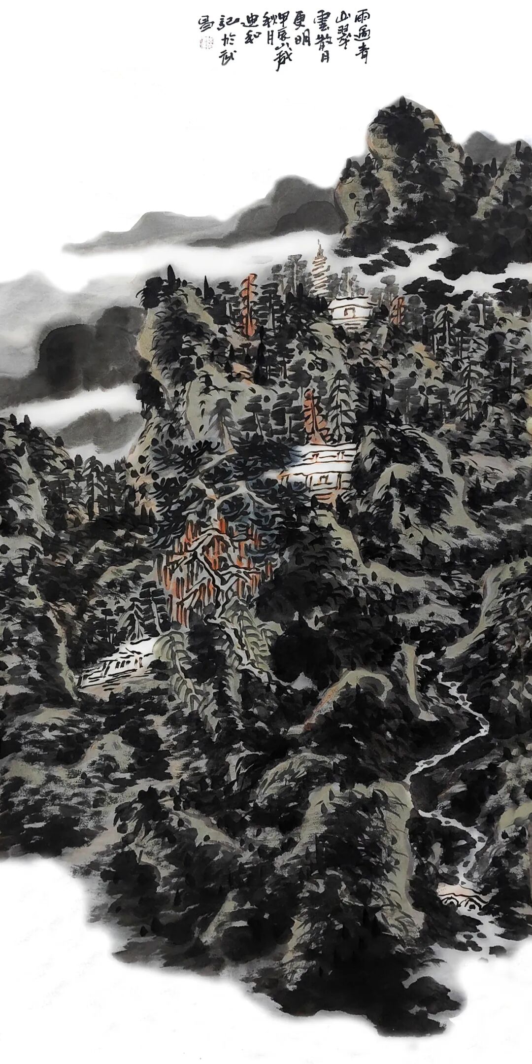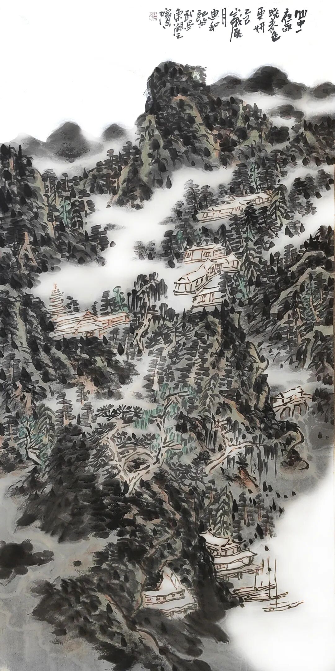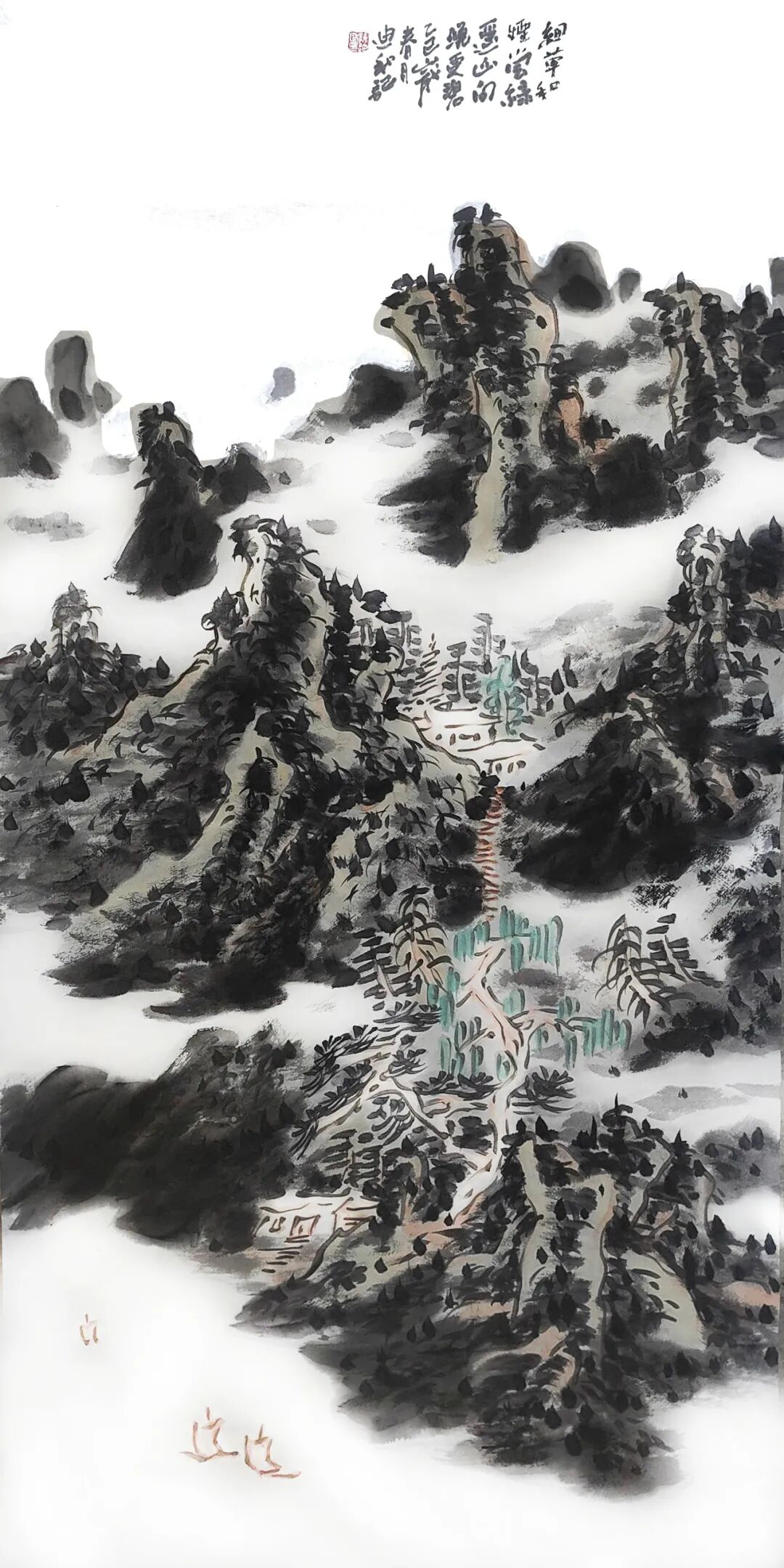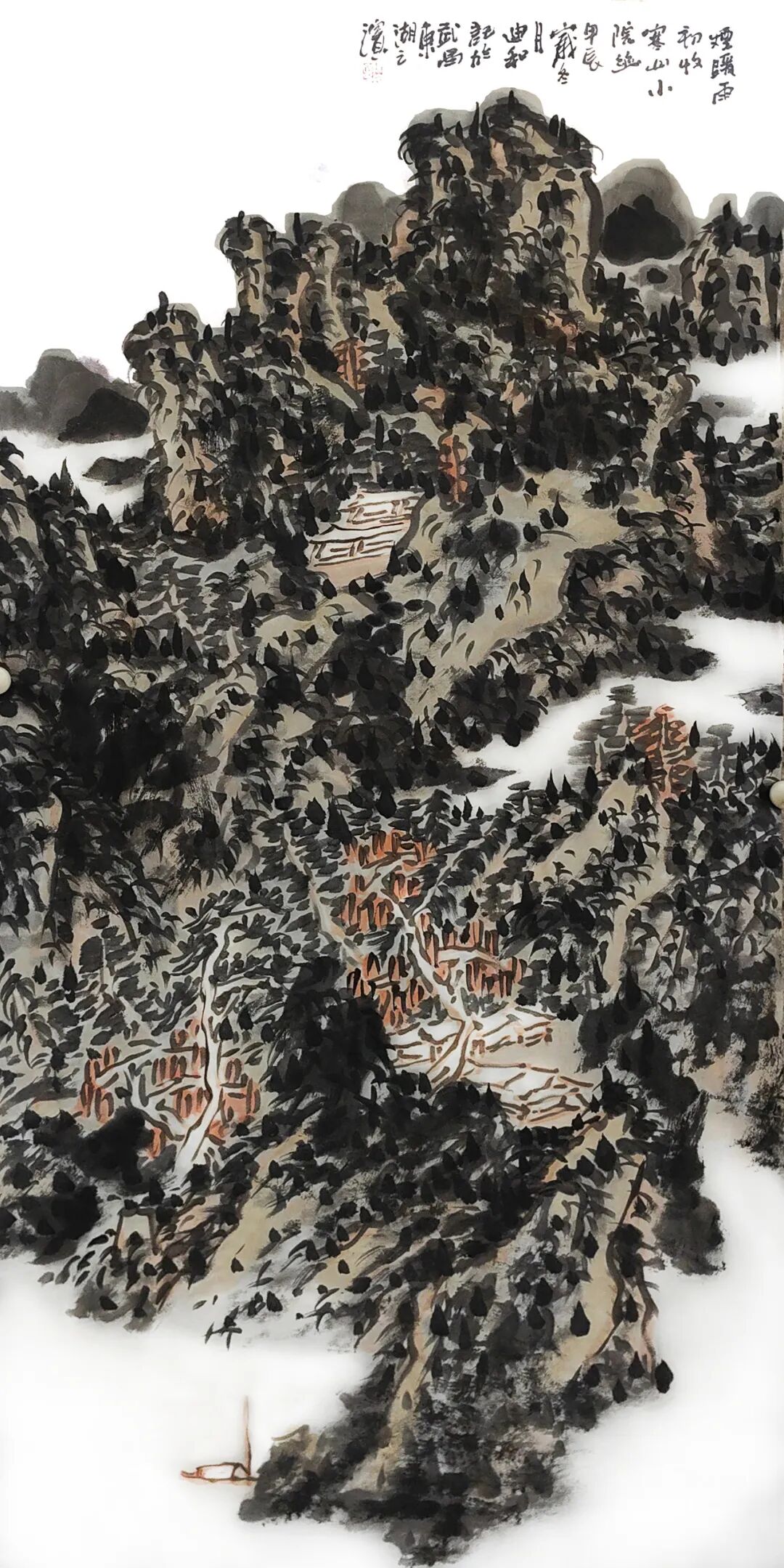 细草和烟尝绿 遥山向晚更碧 136x68cm