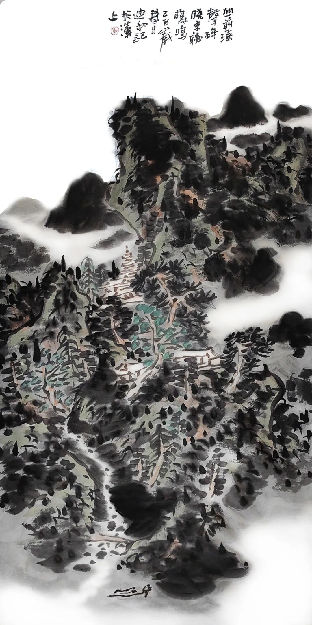 山前溪声碎 晓来听鸪鸣 136x68cm