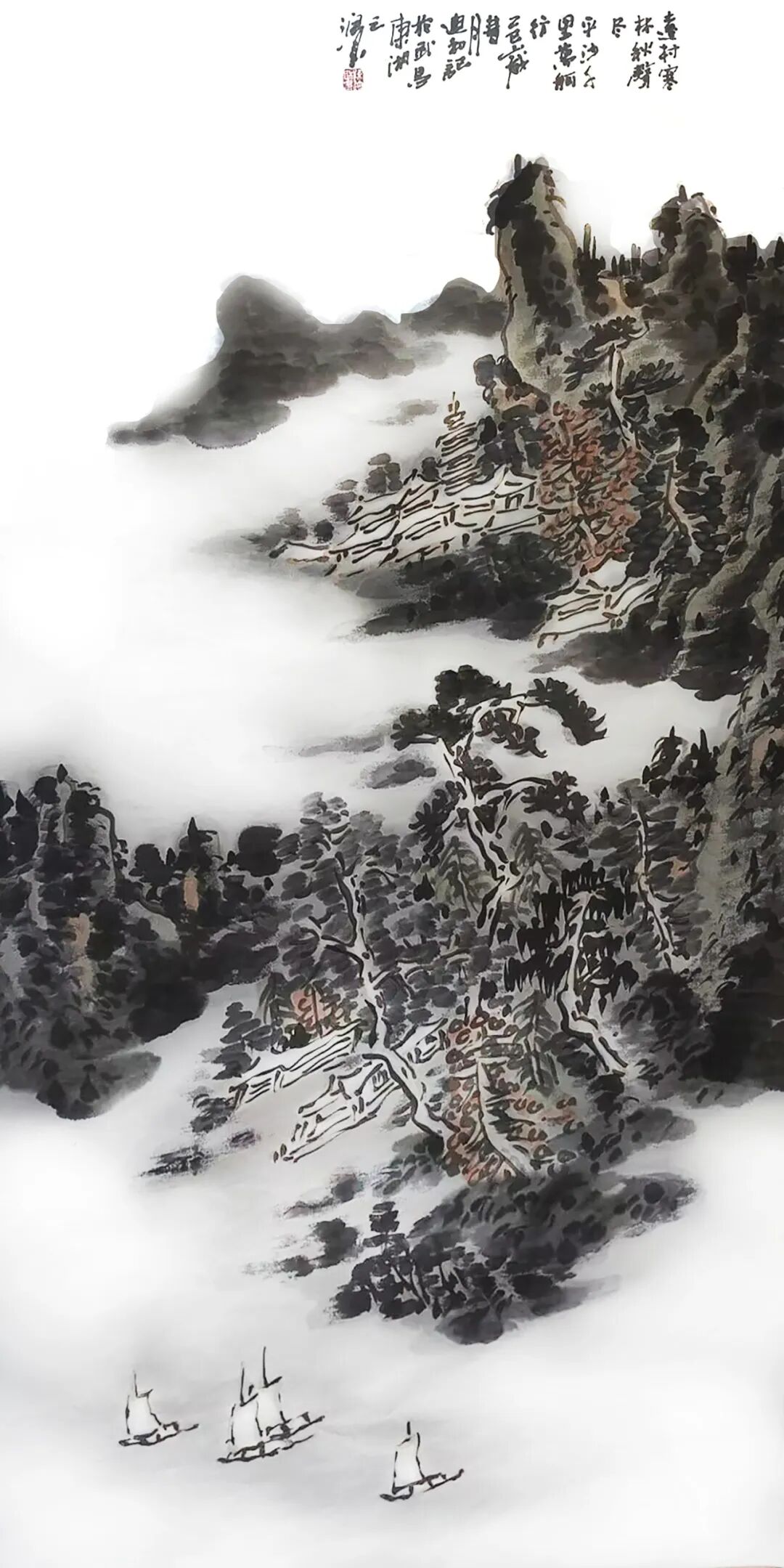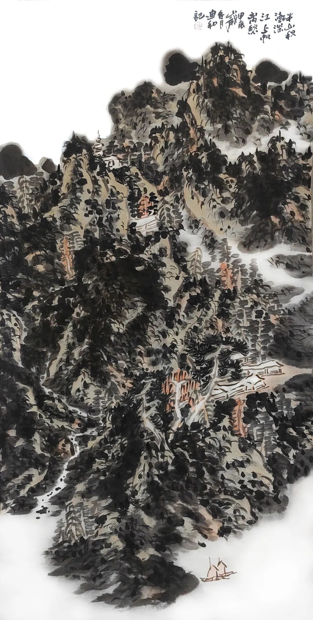 远村寒林秋声尽 平沙千里万舸行 136x68cm