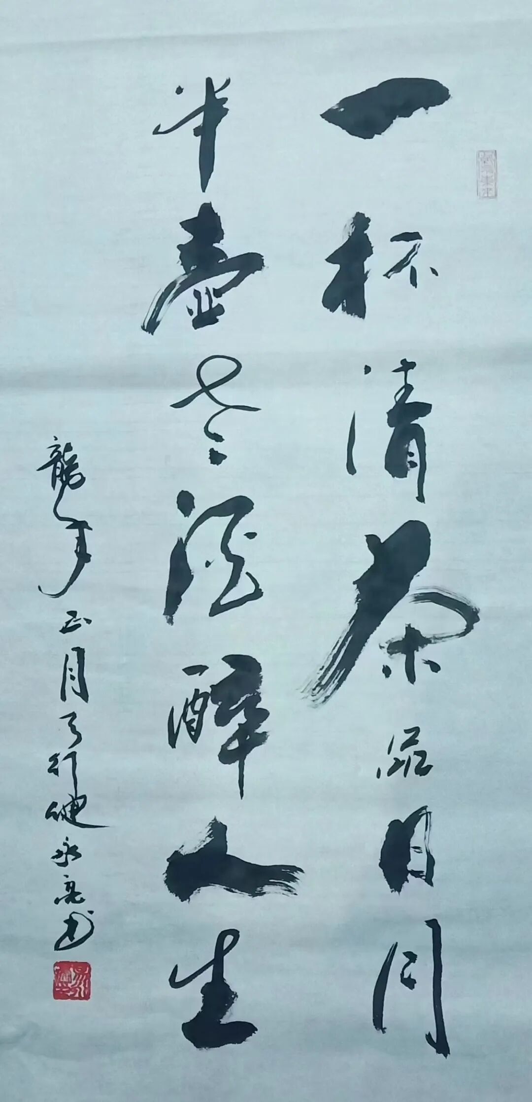 翰墨书道,首重人品,本人提笔挥毫数十载,自然也是深谙此道,其人品修养受益于太极法门,并以周易文化为背景,取号“天行健”,意在书法与之同源,是谓书肇于自然,夫神在形似之外,而形在神气之中也!