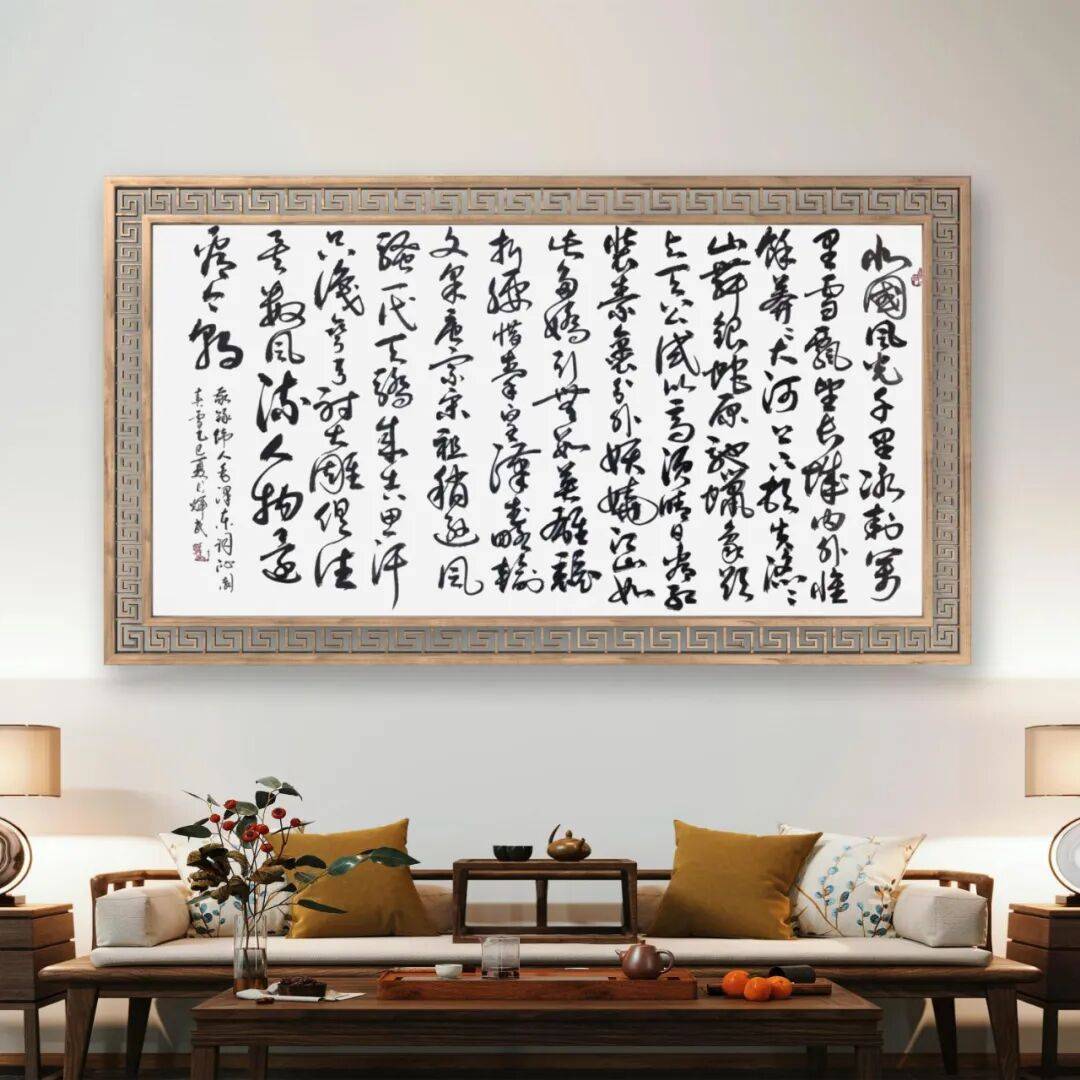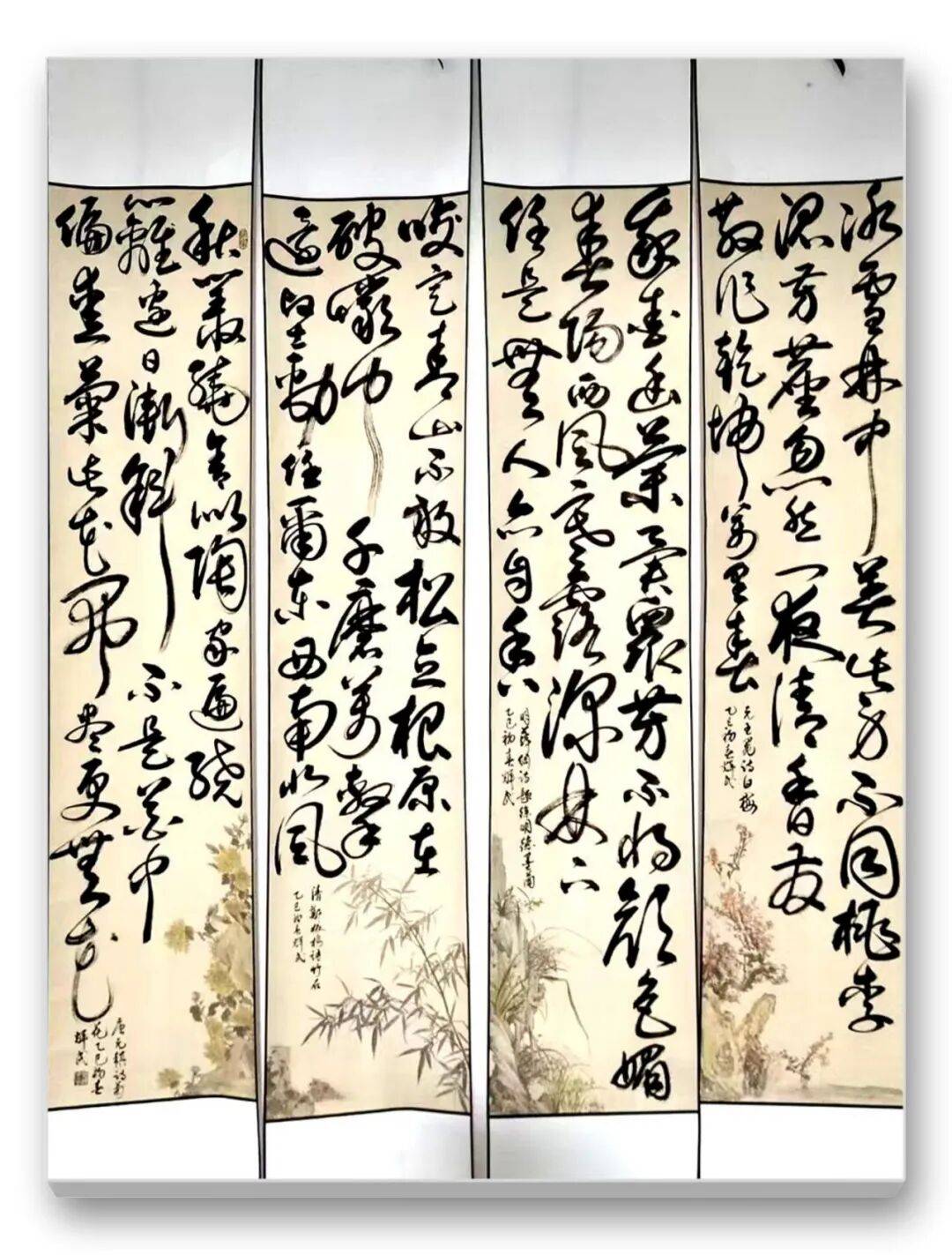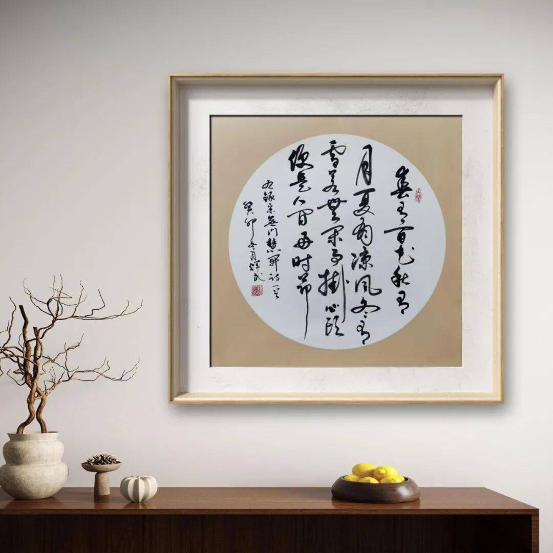 而草书,则是谭辉民老师艺术个性的极致释放,尽显 “笔走龙蛇,气象万千” 之态。草书最能体现书写者的情感与个性,讲究 “破体出新,纵情挥洒”,但自由之下,仍需以法度为纲,否则便成 “野狐禅”。谭辉民老师的草书,无疑是 “放而不纵,狂而有度” 的典范。他的草书作品,线条奔放不羁,笔画简练传神,时而笔走龙蛇,一气呵成;时而戛然而止,留有余韵。字形虽简,却意蕴丰富,省去了不必要的修饰,只保留最核心的笔墨精神,于潦草中见风骨,于狂放中显理性。整幅作品布局疏密错落,墨色浓淡相间,枯湿互映,如疾风骤雨,气势磅礴,却又章法井然,让人感受到草书独有的豪放之美、写意之美。这份 “放得开,收得住” 的功力,正是他二十载兼修不辍的最好证明,彰显了其对书法艺术规律的深刻洞察与灵活运用。