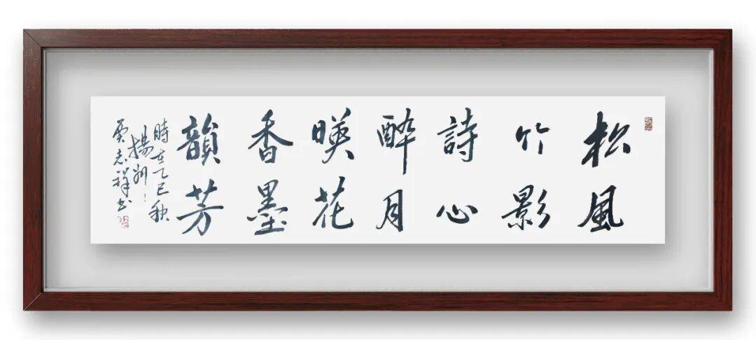 在结字方面,贾志祥先生的行草作品既遵循传统书法的结字原则,又融入了个人的审美追求。其结体疏密得当,欹正相生,在严谨中蕴含变化,在变化中保持统一。有的字左紧右松,开合有度,展现出舒展豪放的气势;有的字上密下疏,重心稳固,呈现出沉稳端庄的仪态;还有的字欹侧倾斜,却能通过笔画的相互呼应与调整,达到险中求稳的艺术效果。这种灵活多变的结字方式,不仅增强了作品的视觉冲击力,更体现了贾先生对书法艺术 “中和之美” 的深刻理解与把握。每一个字都如同一个鲜活的生命,形神兼备,气韵生动,既独立成章,又与其他字相互关联、和谐统一,共同构成了一幅完整的艺术画卷。