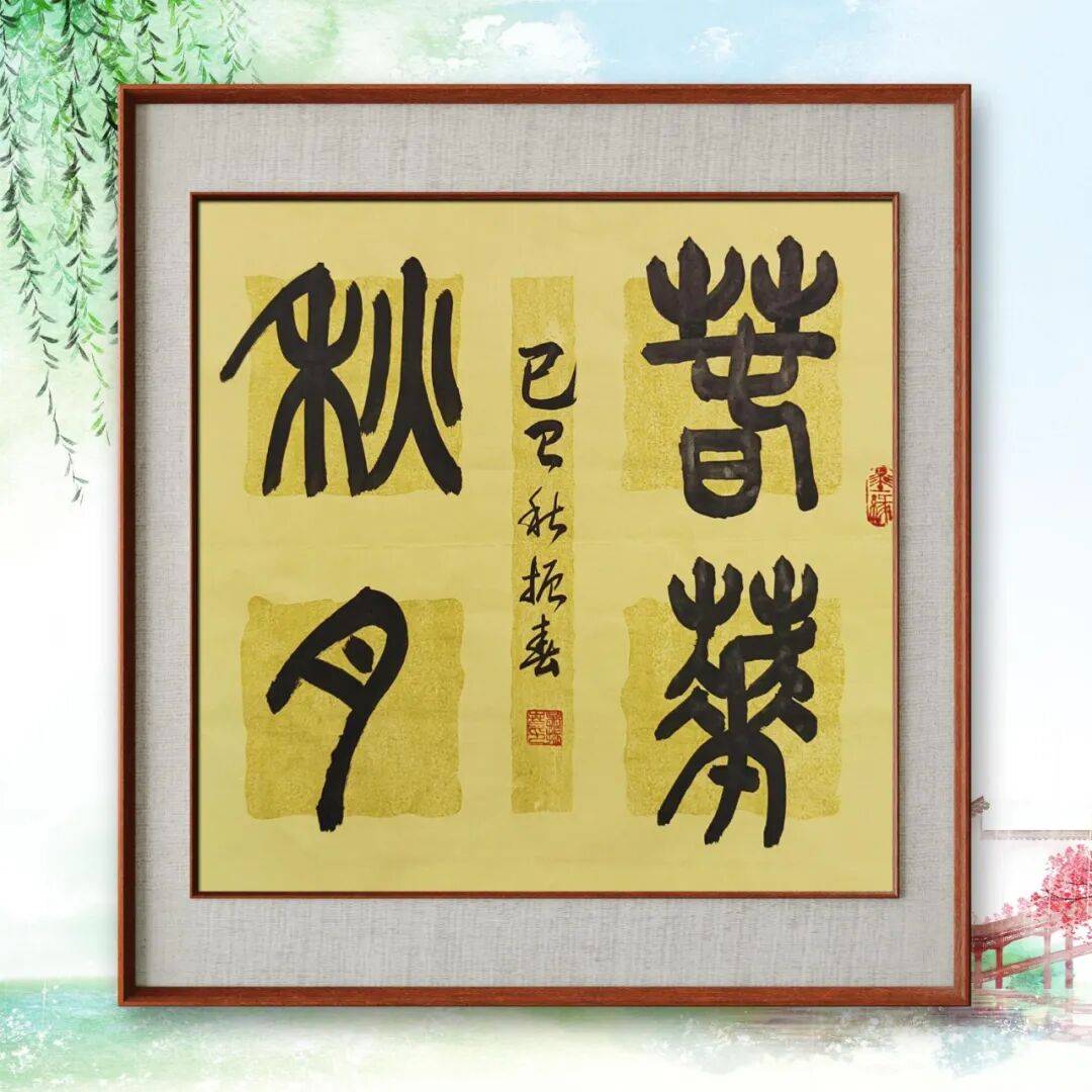 篆书作为汉字最古老的书体之一,线条匀称、结构对称,充满了古朴神秘之美。吴振春先生在篆书学习上同样投入了大量心血,他从甲骨文、金文入手,经典铭文,体悟篆书的线条质感与结构规律。其篆书作品虽数量不多,但每一幅都尽显功力,线条圆润流畅,粗细均匀,结构对称严谨,透着一股古朴庄重之感,展现了他对汉字源头之美的深刻理解与精准把握。