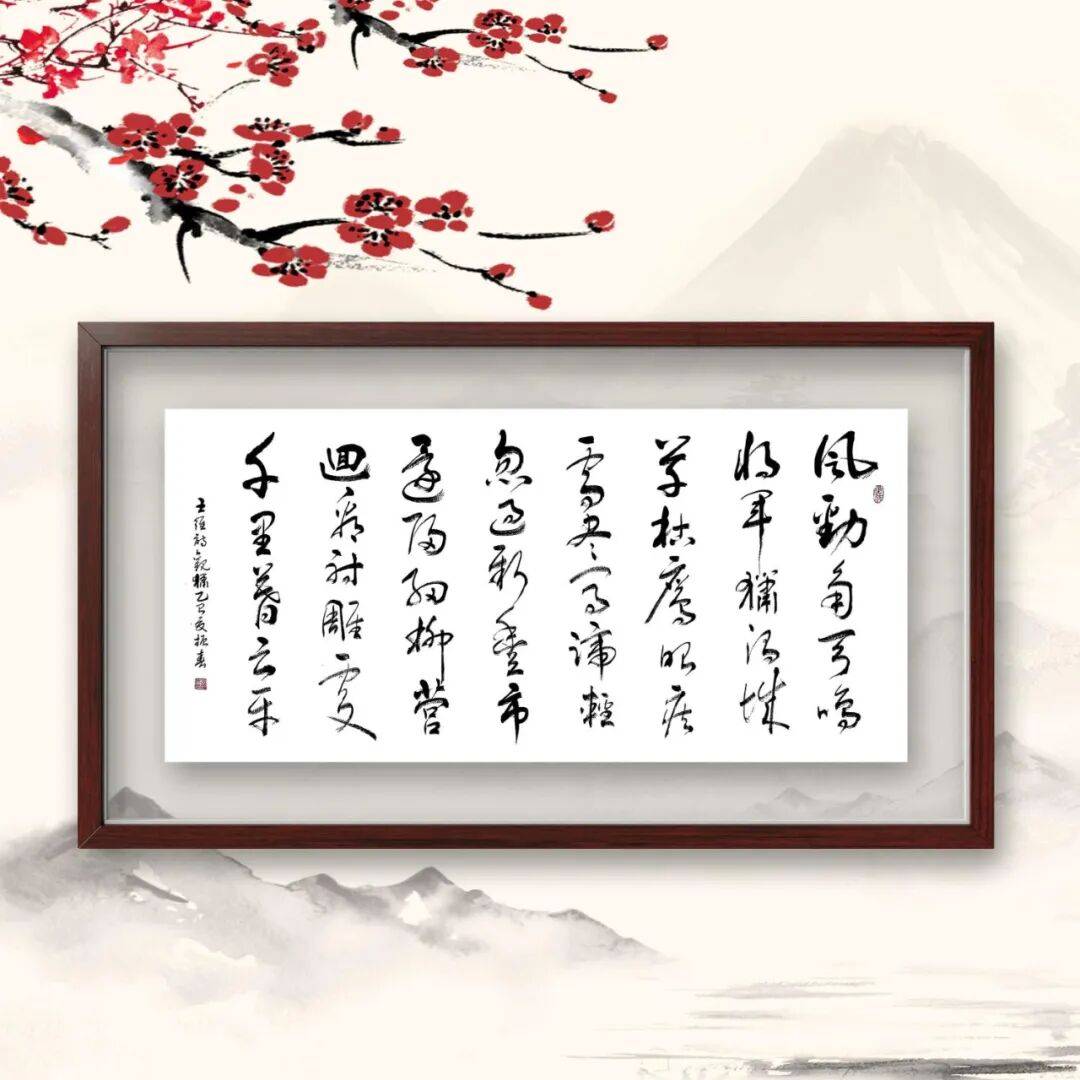 草书以其简约流畅、奔放洒脱的特点,成为书法艺术中最具表现力的书体,也是对书者功力与胆识的极大考验。吴振春先生的草书学习,以张旭、怀素为标杆,同时借鉴孙过庭《书谱》的笔法理论,在追求笔法精妙的同时,注重情感的自由抒发。他认为,草书的“草”并非随意潦草,而是“随心所欲不逾矩”,在遵循草书法度的基础上,实现情感的极致表达。其草书作品,笔势奔放不羁,笔画连绵缠绕,墨色变化丰富,从浓墨重彩到枯笔飞白,过渡自然流畅。整幅作品如疾风骤雨,气势磅礴,观之令人热血沸腾,充分展现了草书艺术的无穷魅力。