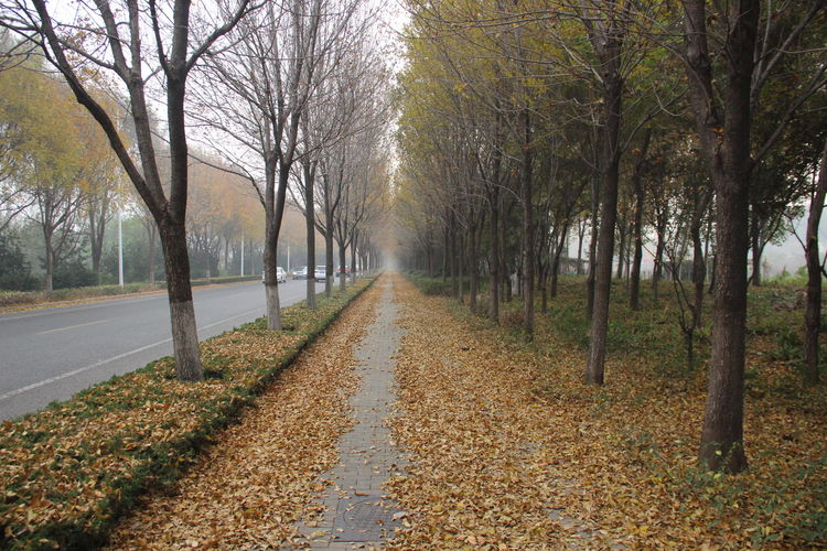 沿河路那飘飘洒洒的落叶,一道“缓扫令”,积叶过尺。停顿了秋的脚步,着色更加浓郁。