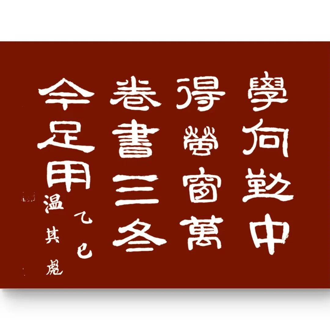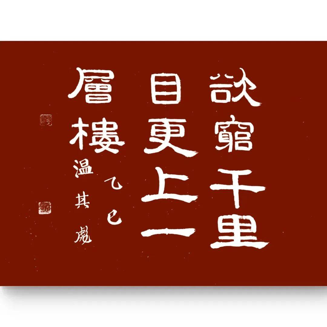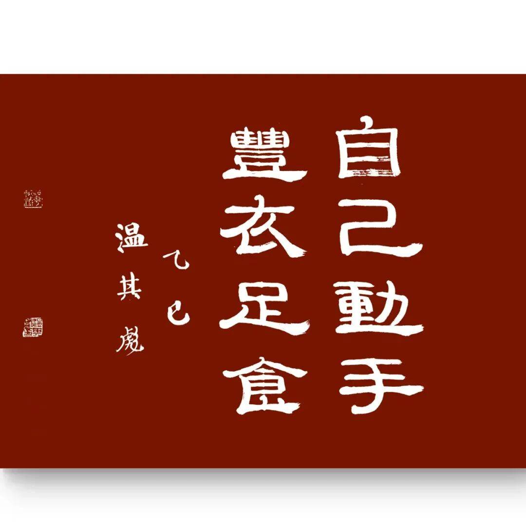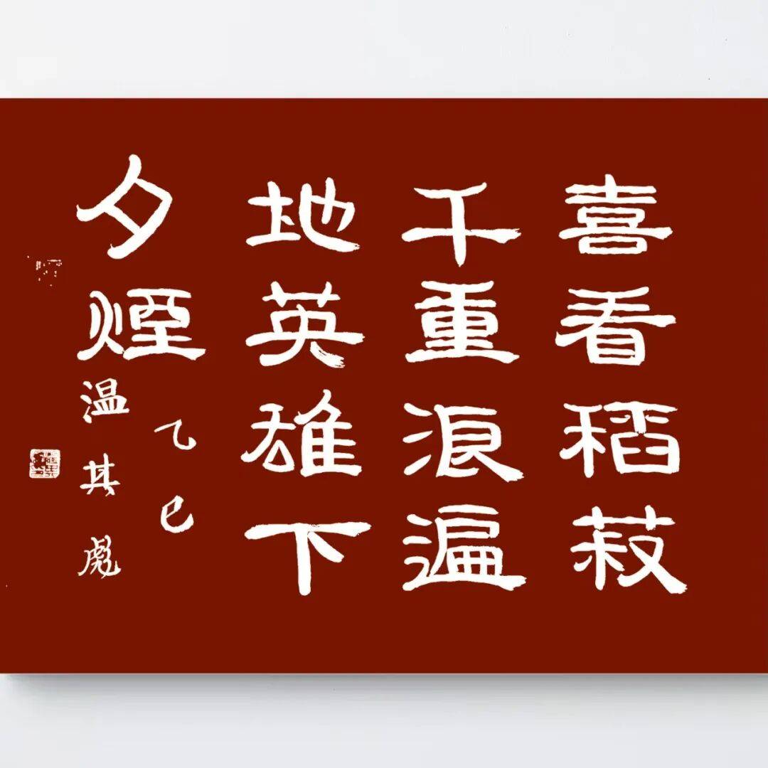 在字形塑造上,他“取法礼器碑,笔法劲拔,取法乙瑛碑,然后又参意华山碑、石门颂、西峡碑的多姿神逸,一碑一精华,汲众而合融",广泛吸收各家精华,形成了"品位极追汉风“的高雅格调。在章法布局上,温其彪创造了独具特色的空间构成。他的作品"章法极有特色,字字铺满,四面撑足,给人方整严谨的装饰美感"。这种饱满的构图方式,既保持了隶书传统的庄重感,又通过细微的变化避免了呆板。他善于"在单纯的技法层面上,还是在丰富的精神层面上,先生皆是体现出完美的文人骨气与风范文脉正统,名家风范",将技术性的章法处理提升到了精神表达的层面。