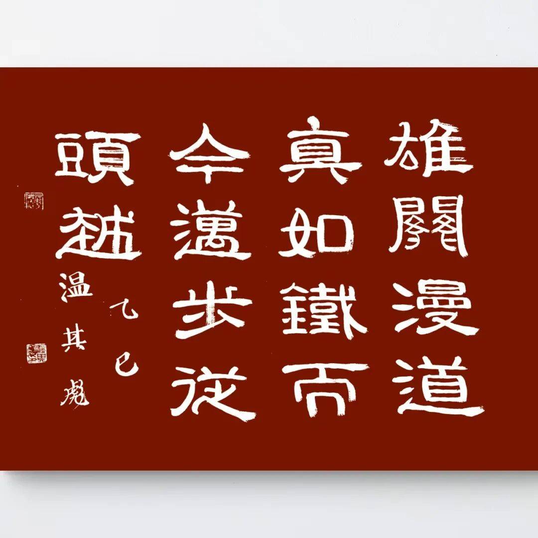 “师古而化古"的创造性转化展现了温其彪对待传统的辩证态度。他既尊重传统法度,又不为传统所囿,实现了"师古而不泥古”的艺术理想正如评论所言:"汉隶经由他的笔墨再生能打破代际的阻隔,为时代带来沉着健迈的笔墨雄观"。这种创造性转化的能力,源于温其彪对传统精神的深刻领悟而非表面模仿。他“在继承传统的基础上,融入了个人的创新元素,展现出新的艺术风格和审美价值",使古老的隶书艺术焕发出新的生命力。通过"有些作品在保持隶书基本特征的同时,通过变化笔画粗细、结构布局等方式,赋予作品新的视觉效果和情感表达",温其彪成功架起了传统与现代的桥梁,