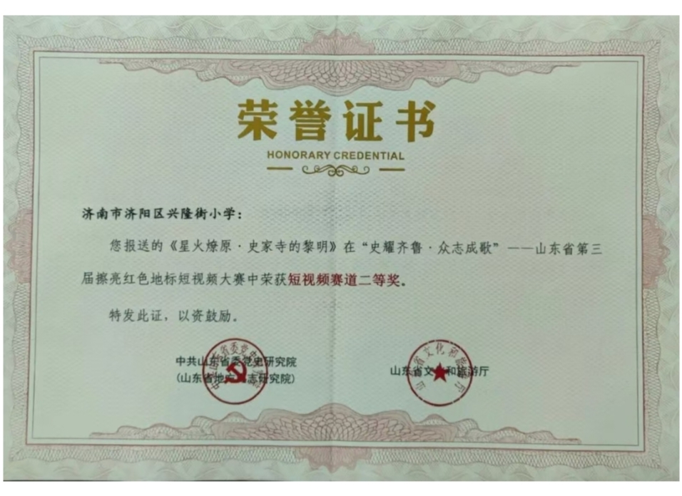 济南市济阳区两部党史作品荣获山东省“擦亮红色地标短视频”二等奖。
