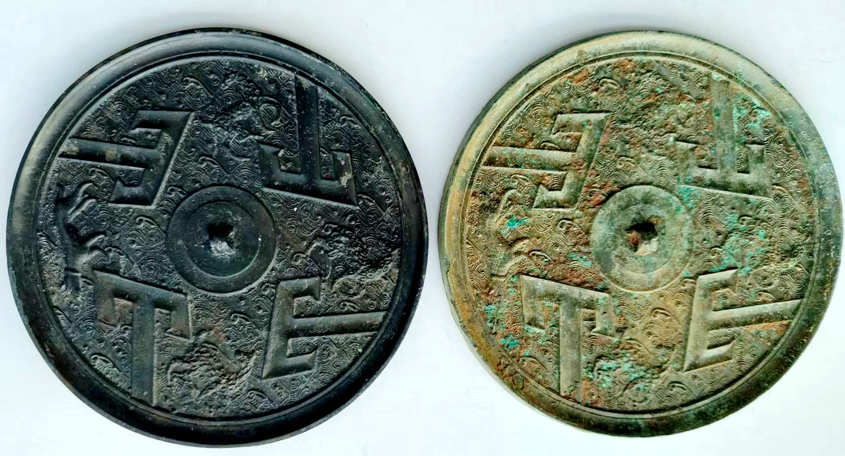 如今这对同模镜的重逢,更像是这份古老祈愿的跨越地域的延续:它们曾一同诞生于战国的铸坊(或楚地,亦或齐地),曾分别守望楚水齐山,如今一同重现于齐地的视野,恰似一场跨越千年、跨越地域的“履约”,让远古的审美与信仰以最完整的姿态重新呈现在世人面前。