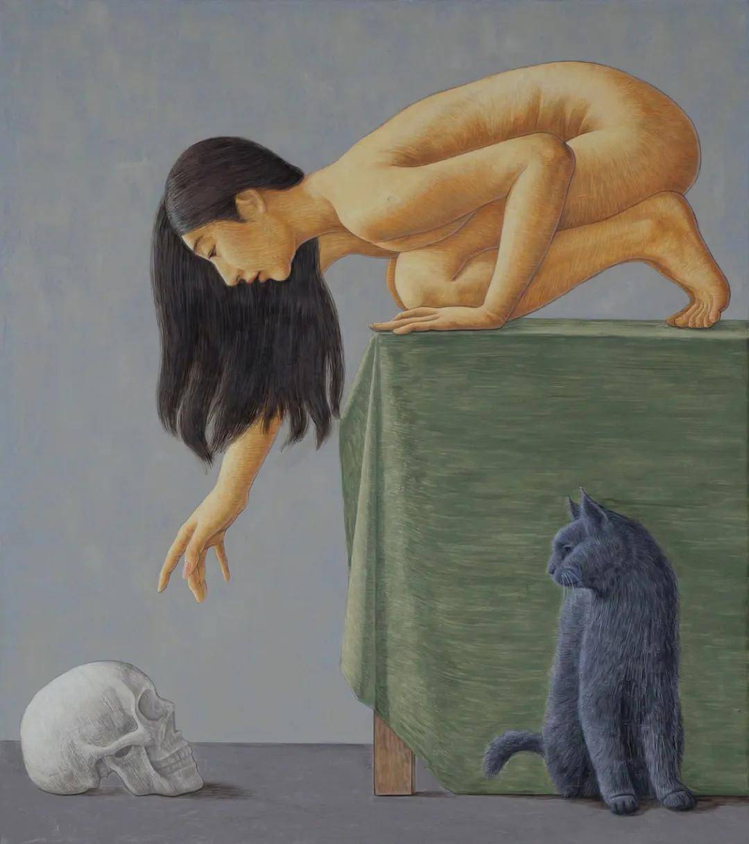 这些弧面,可以是他所观察和体悟的历史与现实,可以是观念、情怀直至内心隐秘及其他,是其丰富层次的体现。而此时的关键在于,汪洋的语言处理为我们提供了精准的索引,关联着对作品不同层面的感知路径,使得画面呈现出特别的仪式感以及隐秘、形而上的附魅,能让我们瞬时间感觉到。当然,仅就直观感受而言,在他精心构筑的画面和细密精到的形象刻画面前,我还不能够准确领会他的意识重点和文化思考的全部关键词,只是说,他的思路逻辑,他的形式语言素养,全方位的深思熟虑是可感可见的。