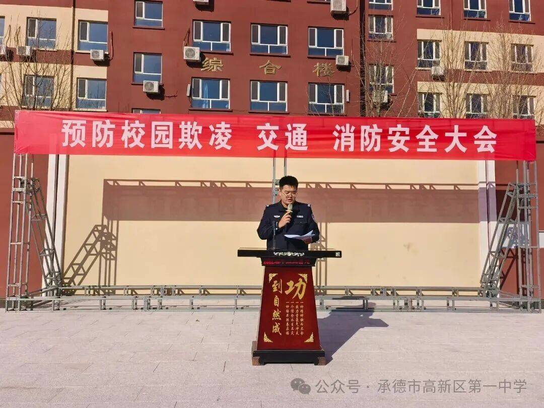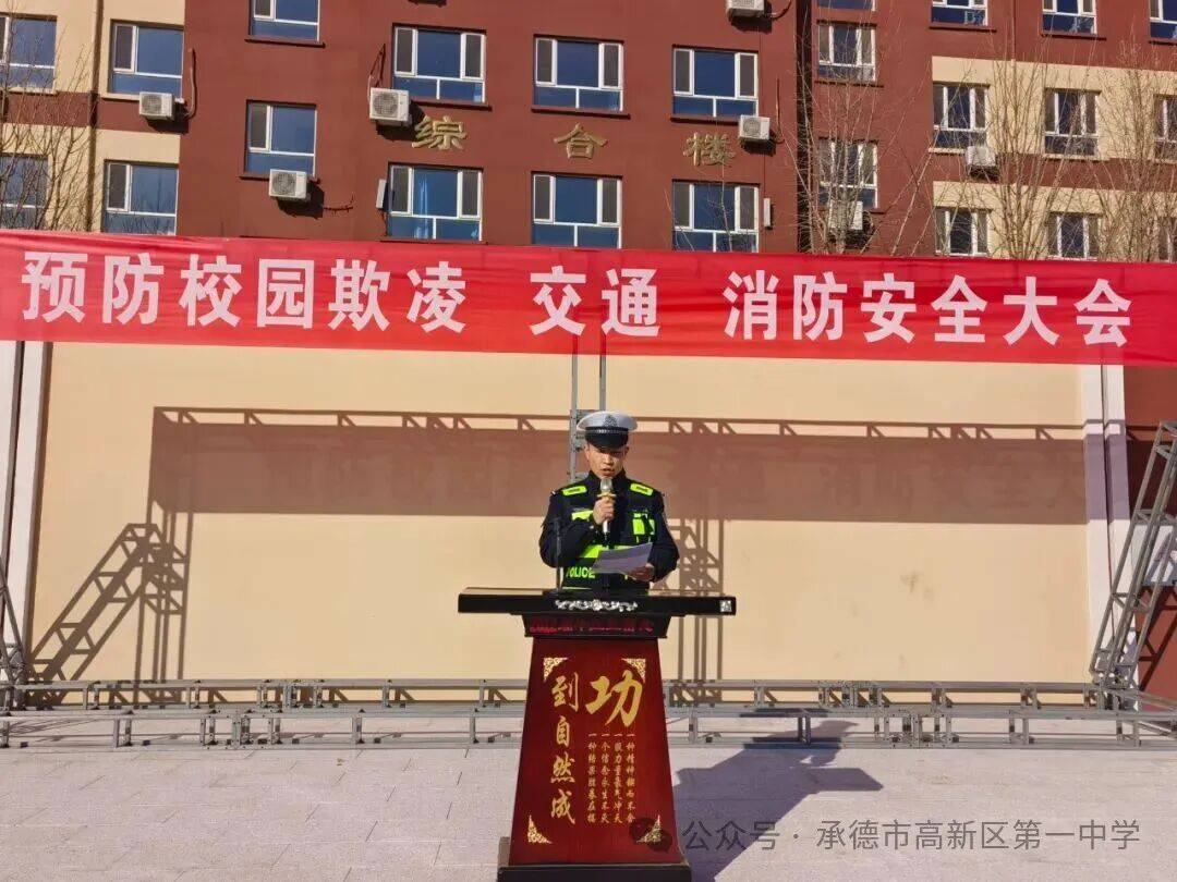下午1点,高新区上板城派出所警官尤嘉,高新区消防大队消防员李天星,承德市交警第七中队交警李政就“预防校园欺凌”、“消防安全”、“交通安全”等主题为家长和学生带来了精彩纷呈的三场讲座。主讲人以真实案例为切入点,结合相关法律条款,为学生和家长们普及了法治、消防和交通安全常识,构筑了家校社协同育人的底座。