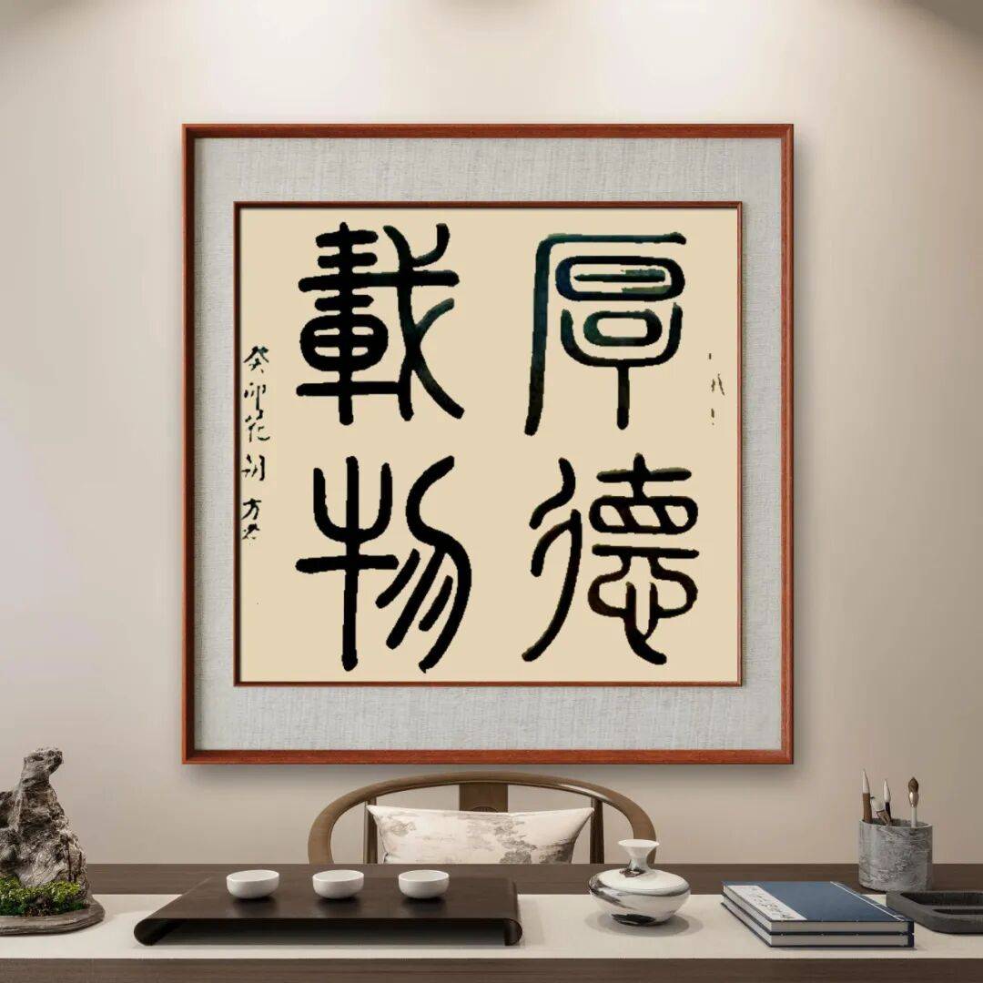 “笔法流畅、中正厚重”,这八个字精准概括了方孝德先生篆书笔法的核心特征。篆书的线条以“匀净”为要,但真正的艺术境界在于“匀而不板,净而不枯”,先生无疑深谙此道。他的笔法摒弃了刻意雕琢的痕迹,起笔如惊鸿照影,收笔似游龙入海,转折处圆融自然却又暗藏筋骨,每一根线条都如行云流水般流畅舒展,却又始终保持着中正端庄的姿态,不偏不倚,尽显从容。这种笔法特征所造就的,是其作品“古朴而典雅,奇拙而雄浑,老辣而苍润”的独特风貌。“古朴”源于他对传统篆书精髓的深刻把握,其笔下的字形多取自秦篆与汉篆,保留了古文字的原始韵味,观之如见商周青铜器皿上的铭文,自带岁月沉淀的厚重感;“典雅”则来自他对笔法细节的精准把控,线条的粗细变化、间距的疏密安排,都遵循着严谨的美学规律,无一处不体现着文人书法的雅致情怀。