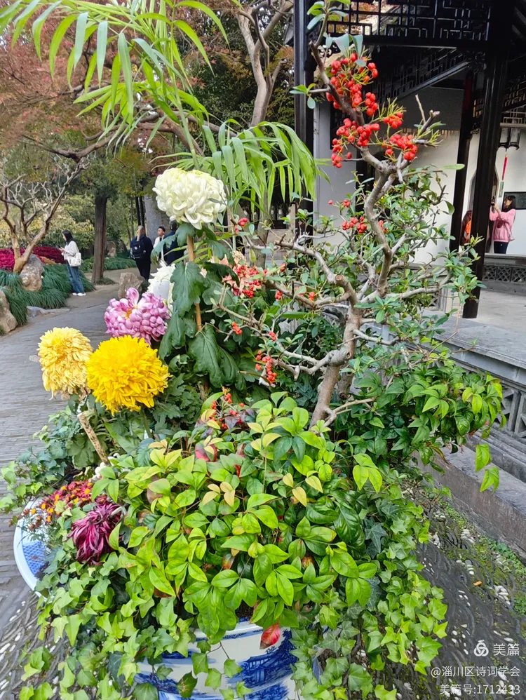 恰逢湖区举办菊花展,数千朵菊花在初冬的阳光下开得静美。