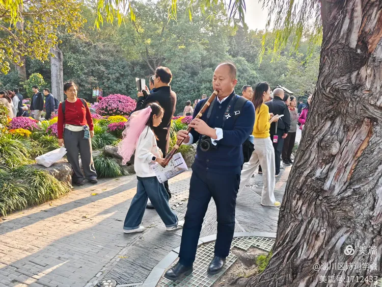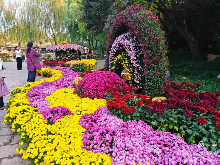 初冬缓步瘦西湖,万朵菊开沿径铺,