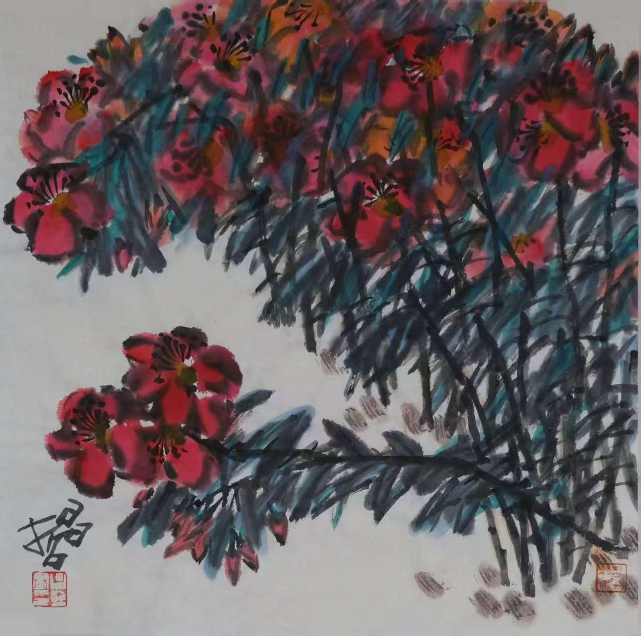 多年来,我一直专研大写意花鸟画创作,体会较深的就是画画不要怕画坏,李可染大师曾说“余一生废画三千张”,画坏是经常的事,也是一个必然的过程。画画胆要正,敢于下笔,潇洒挥写,大胆落笔,细心收拾,方可得道。如果因为怕画坏,就束手束脚,墨守成规,不敢突破,总在画自己熟悉的好上手的画,或跟在别人后面亦步亦趋的画,千篇一律,没有创新,没有个性,很难有更大的进步。