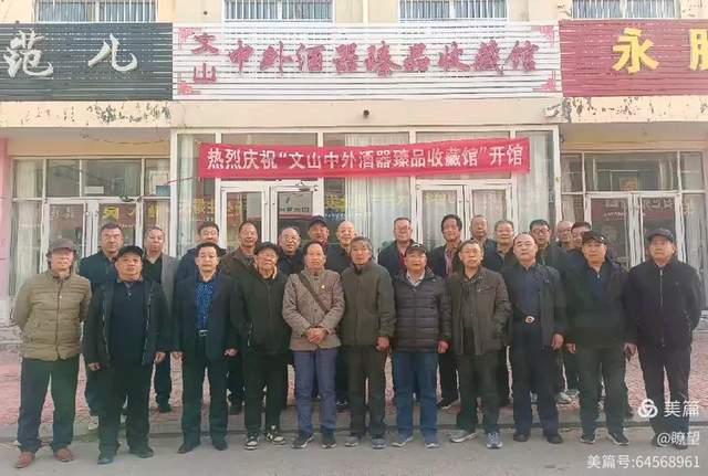 大家来到寿光市洛城街道留吕村,为“文山中外酒器臻品收藏馆”,举行开馆庆祝仪式,为的是弘扬中国五千多年来的酒文化。因为所有酒器既是酒的载体,也是中华历史文化的载体,通过各类酒器的外观体现,就能看到中国上下五千年的政治、经济、民族风俗等社会文化。宣传收藏酒器,就是弘扬中华文化。参观刘文山会长的中外酒器臻品收藏馆就是展示刘文山会长在酒器收藏事业中所做出的突出贡献,就是让全国人民知道潍坊寿光市除了蔬菜大棚之外还有一个远近闻名的“文山中外酒器臻品收藏馆”, 就是让全国人民在了解寿光的蔬菜文化的同时了解寿光的酒器文化,并鼓励所有酒器收藏会员藏友向文山会长学习,为中外酒协的酒文化事业做出新的贡献。