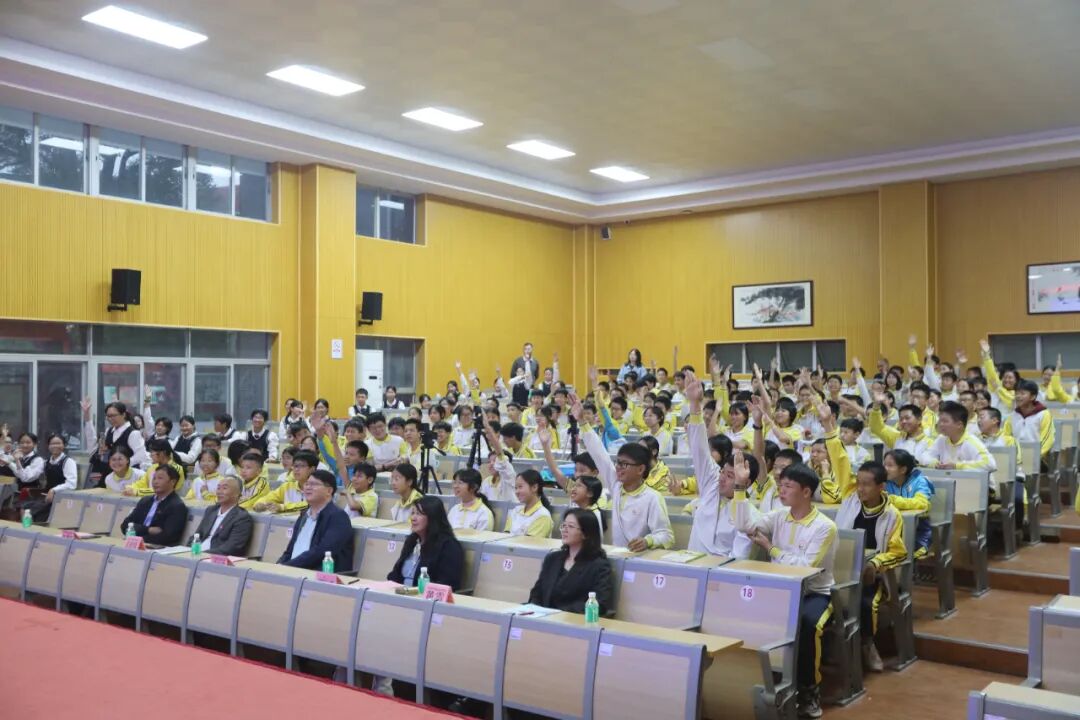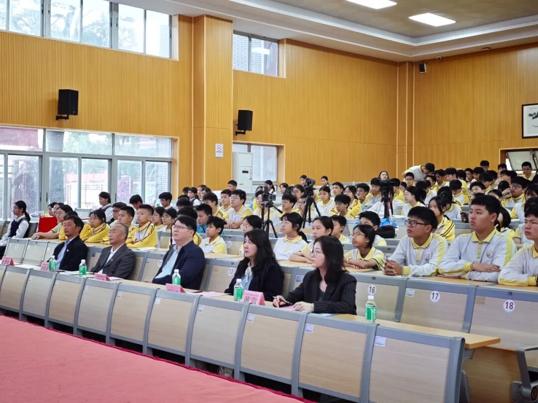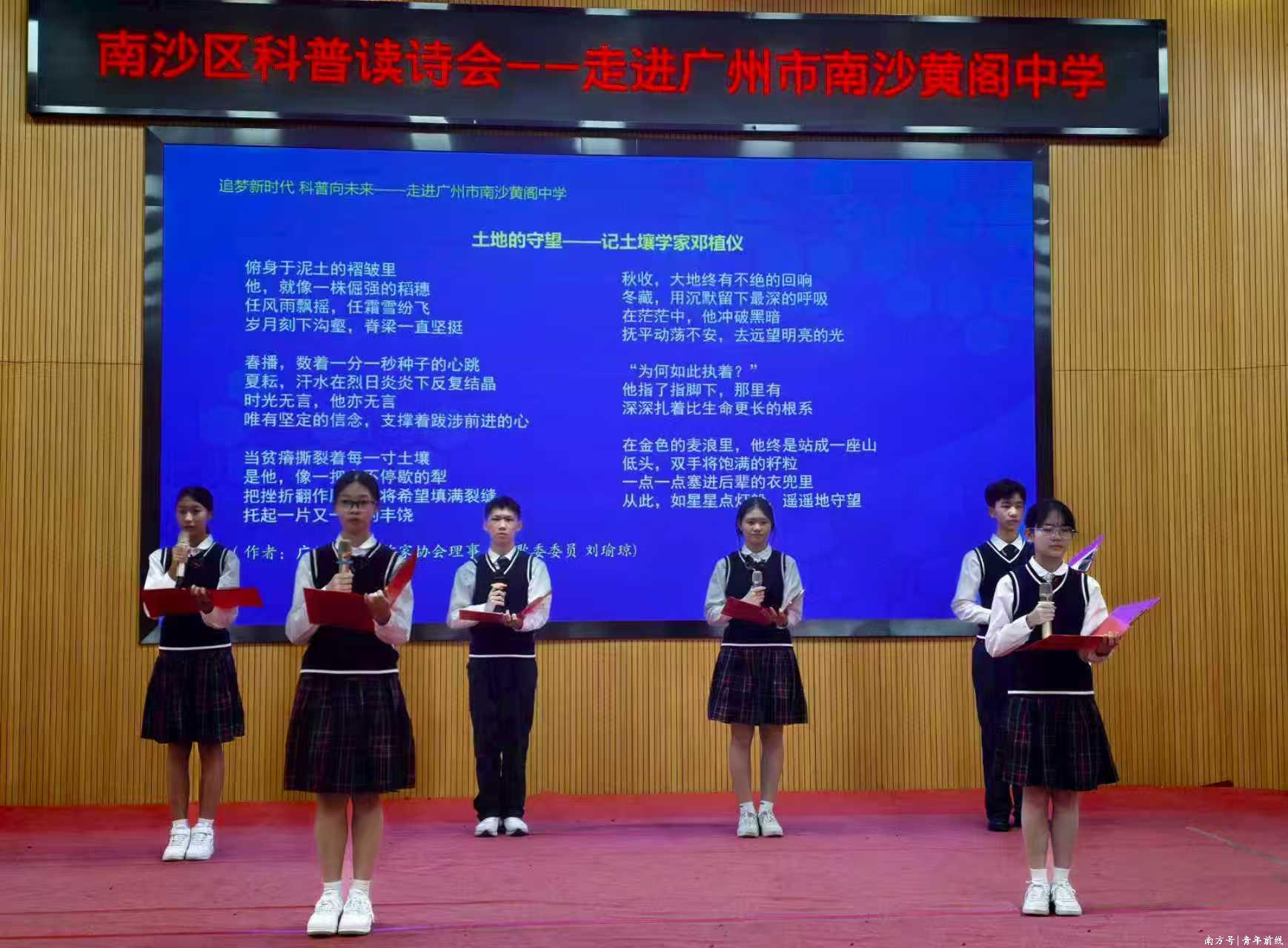 11 月 26 日,第二场读诗会在黄阁中学举办,规模进一步扩大。除了广州市青年作家协会主席汤炎忠、执行秘书长黄雪,诗人郑秋梅,黄阁中学党支部书记、校长陈丽云,副校长麦毅锋,副书记麦渭波等校领导外,还有200多名师生现场参与,同时数千名师生通过线上方式同步观看,共同沉浸在这场科普与诗歌的盛宴中。活动流程与首场相似,现场互动依旧热烈,学生们在朗诵和问答中展现出的对科学的热爱令人动容。