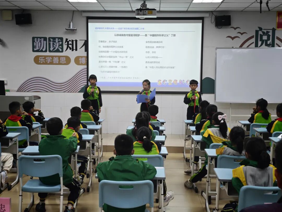 本次活动朗诵的六首诗歌,由青年诗人罗燕燕、江浪才尽、李旺清、丘武军、刘瑜琼、梁江南精心创作,将科技工作者的奋斗历程与高尚精神凝练于诗句之中。每首诗歌朗诵结束后,罗燕燕、黄雪依次进行现场点评,从朗诵技巧到情感表达,给予学生们专业指导。随后的科普知识问答环节互动踊跃,巧妙检验了同学们的听讲成果,也将现场气氛推至高潮。前十名答对的学生,还将获得汤炎忠主席创作的“青少年国情教育”丛书之《稻田拓荒人丁颖》《昆虫学家庞雄飞》等精品图书作为奖励。这种“听故事、诵诗歌、学知识”的沉浸式体验,构成了一个完整的教育闭环,让科学精神的传承不再是枯燥的说教,而成为一次情感的共鸣与思想的启迪。
