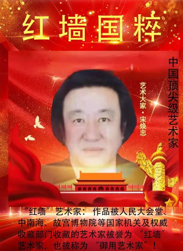 2024 年6月7日央视CCTV授予《红墙国粹》中国顶尖级艺术家宋焕忠, 作品被人民大会堂、中南海、故宫博物院等国家权威收藏部门收藏被 誉为“红墙艺术家也被称为御用艺术家"!