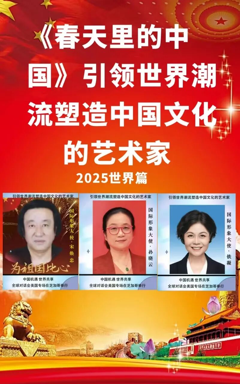 2025 年3月19日央视CCTV授予宋焕忠院长、孙晓云主席、铁凝主 席《春天里的中国》引领世界潮流塑造中国文化的艺术家,国际形象使称号。