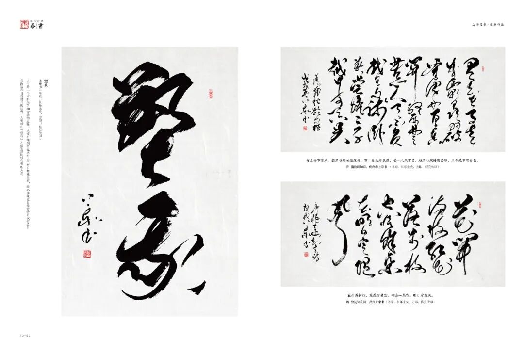 武道与书道,皆为载道之器。程克欣先生笔下书法阴阳相济,亦是源于克星掌法的刚柔相济,于是书法便有了不为物役的定力、虚极静笃的境界。同武功修心的造诣一样,他的草书如"野马奔腾",行楷似"玉树临风",章法磅礴而气脉贯通,形成他别具风采的"上泰书法",以八面出锋的笔法、飞白涨墨的意趣,形成了"银钩铁划"般的苍劲与古雅!所作《泰书.当代行草》集,无疑也是熔古铸今的精品范例,博众家之所长,书时代之新章,翰墨薪火,由此传续而终得“全国书画创新模范人物”第一名。以至成为中国书画非物质文化遗产功勋人物。